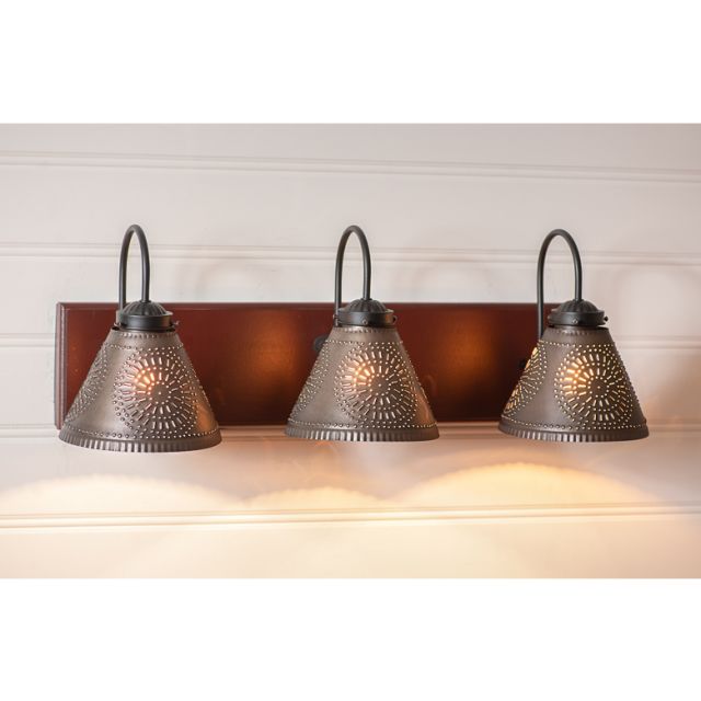 Beautiful in its classic simplicity, our versatile Saddle Light is equally at home in an entryway or a country laundry room. Because of its adaptability to every space, this classic has become the choice of decorators everywhere.Smokey Black tin finish. Wired with 4 E12/Candelabra sockets, 60 watts max. Works with LED, Incandescent, and Fluoresc...