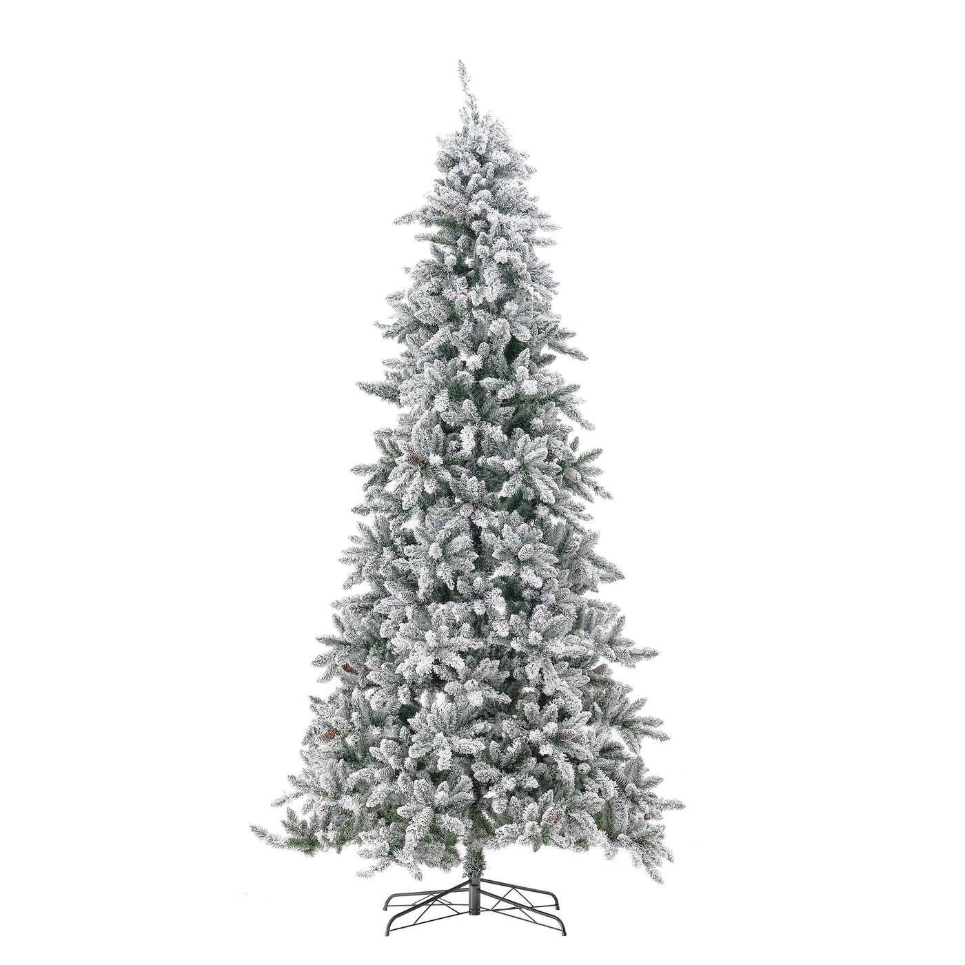 - 10’ Flocked Livingston Fir Artificial Christmas Tree with Pine Cones, 750 Clear Warm LED Lights and 2424 Bendable Branches