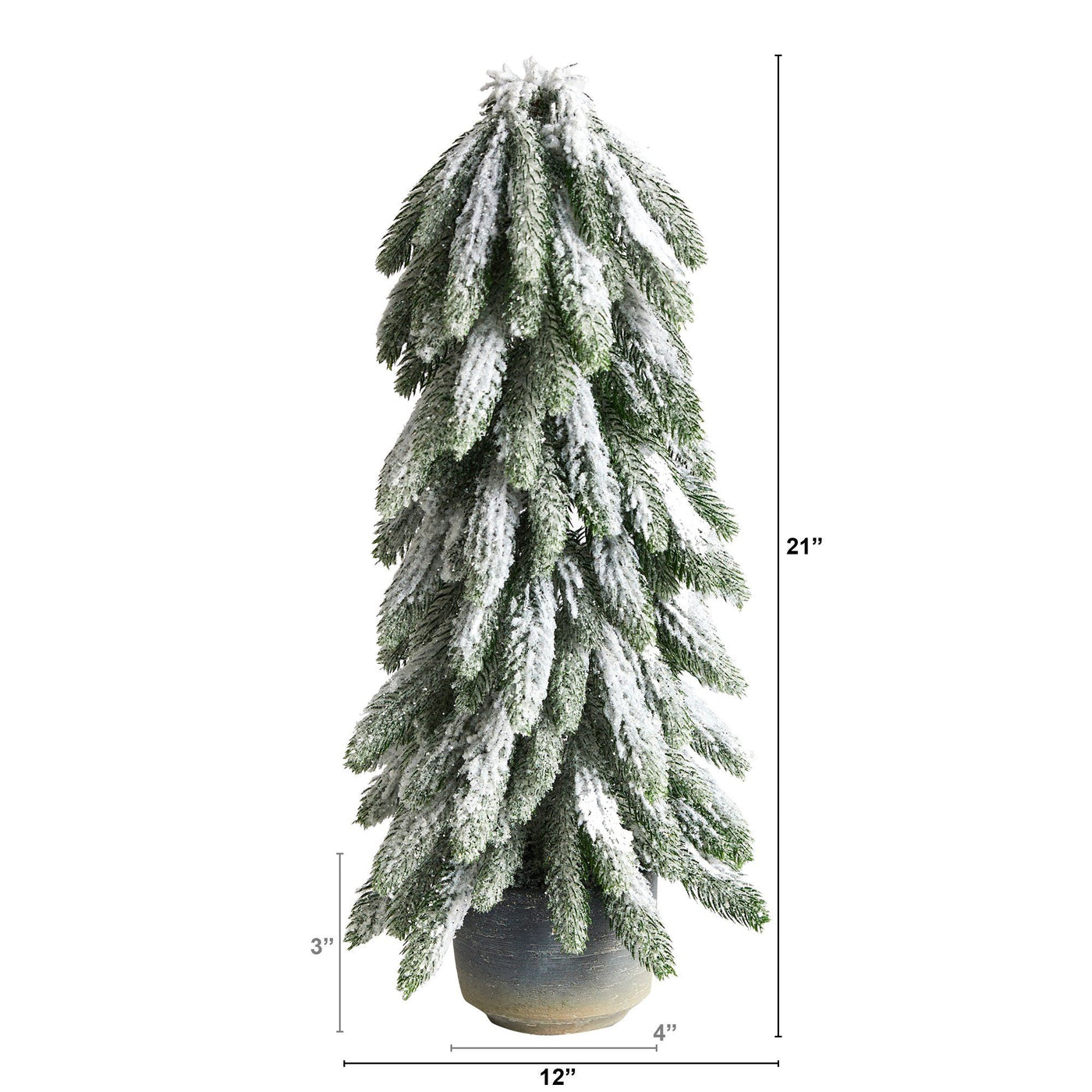 - 21” Flocked Artificial Christmas Tree in Decorative Planter