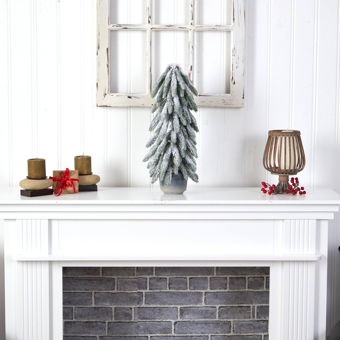 Spread Christmas cheer to your tabletops with this desktop artificial Christmas tree. Recreate a snowy winter wonderland with the snow dusting on the thick branches. Hang all your favorite Christmas ornaments quickly and effortlessly, and you can even illuminate with your favorite lights. Standing 33” from a decorative planter, add to any deskto...