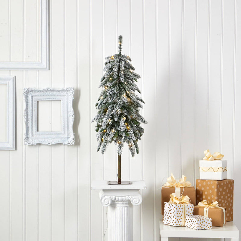 - 3.5’ Flocked Washington Alpine Christmas Tree with 50 White Warm LED lights and 168 Bendable Branches