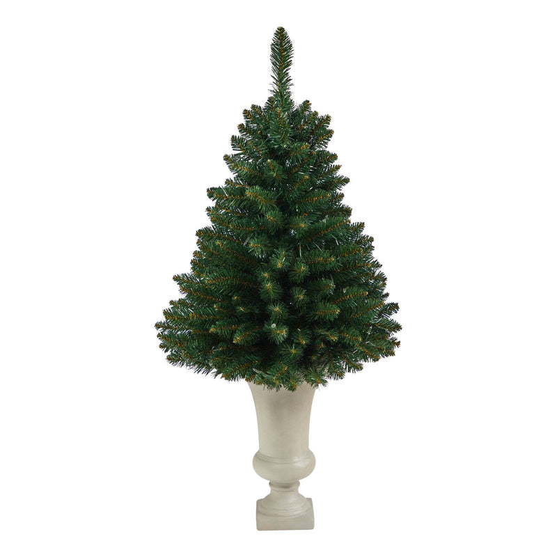 3.5’ Northern Rocky Spruce Artificial Christmas Tree with 50 Clear Lights and 154 Bendable Branches in Sand Colored Urn