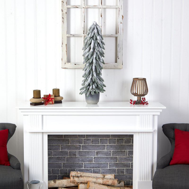35'' Frosted Pine Artificial Christmas Tree in Decorative Planter