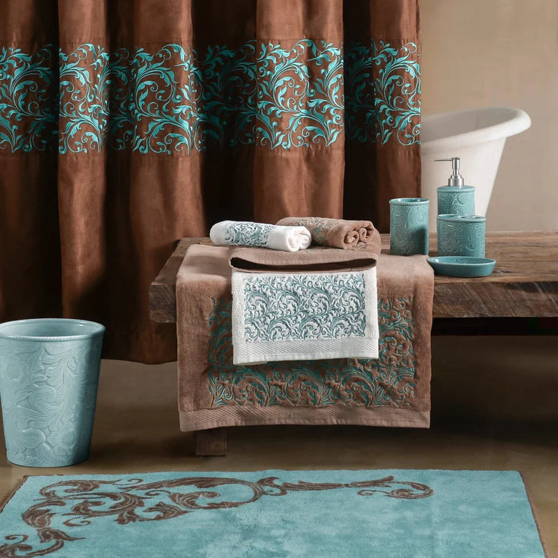 This beautiful 3-piece towel set features windmills, livestock, and wide open plains embroidered in the chocolate thread on soft cream terry cloth. Will complement a variety of western collections, and coordinating accessories are available separately. What's Included1 Bath Towel1 Hand Towel1 Finger Towel DimensionsBath Towel: 27"W x 52"LHand T...