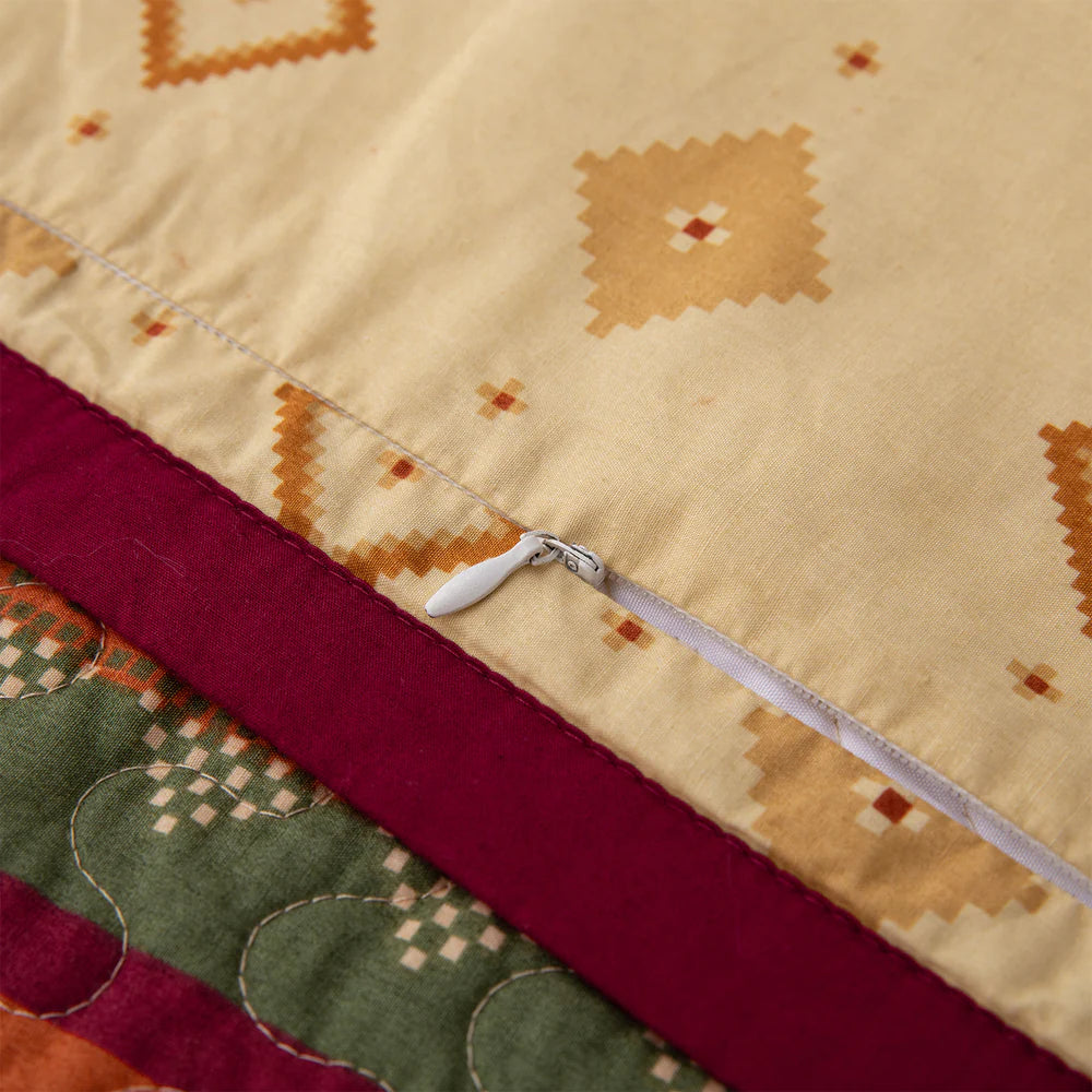 Inspired by the warm glow of a crackling fire, our Rushmore Quilt Set immerses your bed in rich reds and browns nestled into layered diamond patterns. With its rich base, Rushmore can be personalized to your taste. For added warmth and a cozy cabin feel, layer with our faux fur and leather pillows, as well as our Green Corduroy Euro Sham. For ...