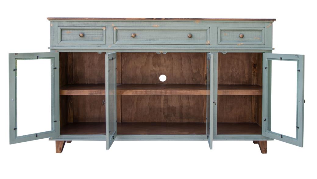 - Toscana 3 Drawer 4 Glass Door Buffet in Sage Green