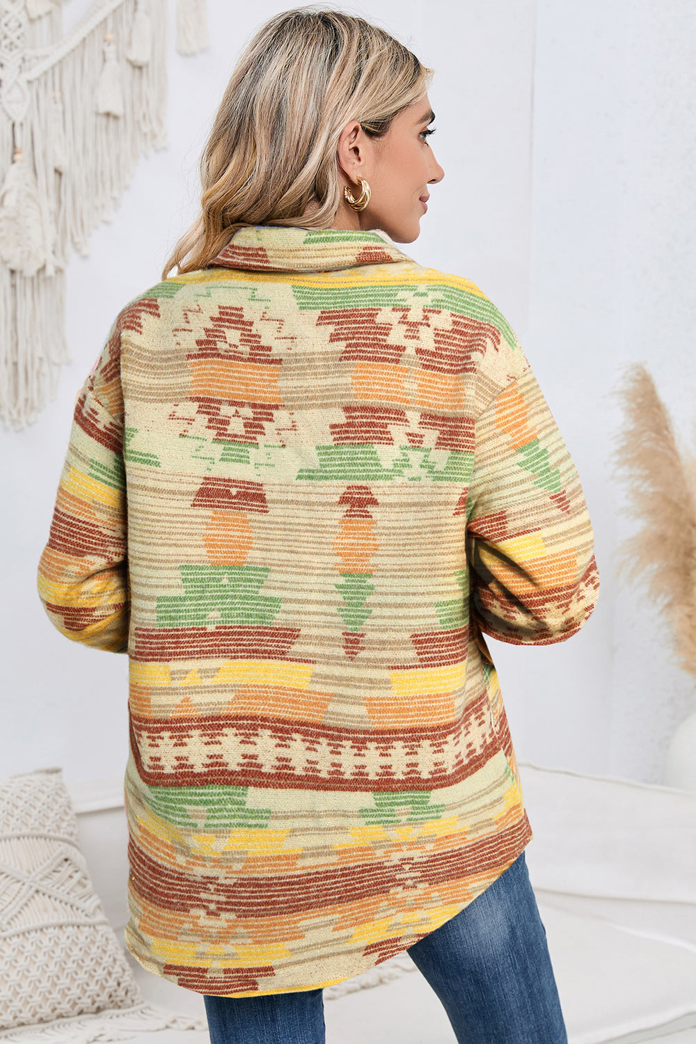 Plus Size Geometric Snap Down Long Sleeve Jacket