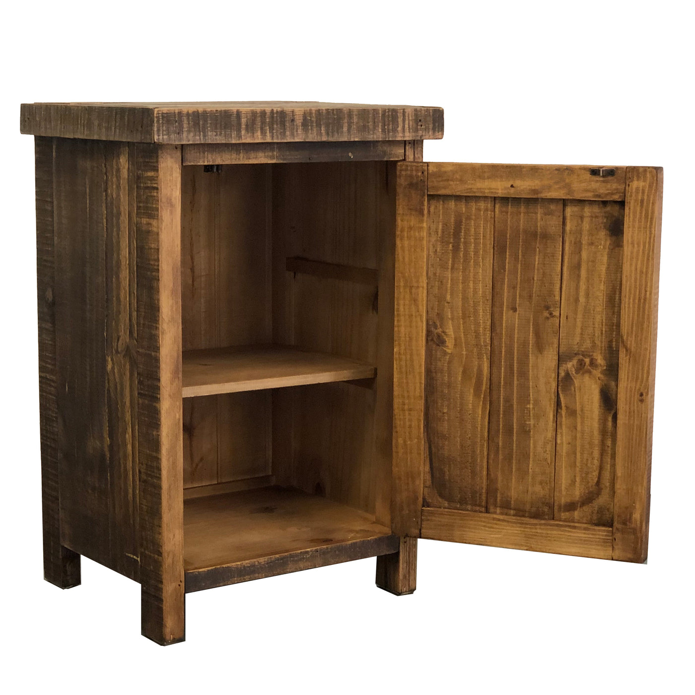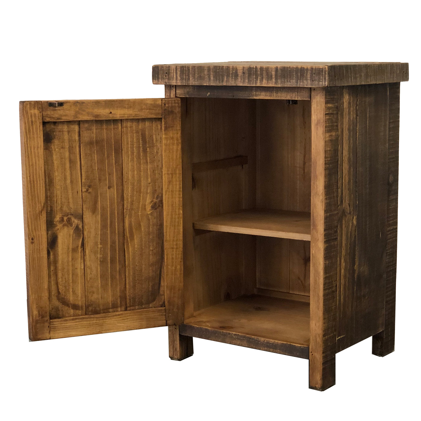 { "id":1955619504170, "title":"Rancho Nightstand", "handle":"rancho-nightstand", "description":"\u003cp\u003eElevate your bedroom decor with the Rancho Nightstand in dark brown wax finish from Rustics For Less. Crafted from solid pine wood, this nightstand combines rustic charm with functional design. Featuring a single door with a shelf, it offers convenient bedside storage for your essentials.\u003c\/p\u003e\n\u003cp\u003eThe dark brown wax finish enhances the natural beauty of the wood, adding a touch of warmth and sophistication to any bedroom setting. Complete with metal hardware for a contemporary contrast, the Rancho Nightstand blends seamlessly with rustic, western and farmhouse-inspired interiors.\u003c\/p\u003e\n\u003cp\u003ePair it with the Rancho Bed and Dresser for a coordinated look that embodies timeless style and durability. Explore Rustics For Less to discover more rustic furniture and home decor pieces that enrich your living spaces with authenticity and craftsmanship.\u003c\/p\u003e\n\u003cul\u003e\n\u003cli\u003eDimensions:\u003c\/li\u003e\n\u003c\/ul\u003e\n\u003cp\u003e     28\"H x 15.5\"D x 19.5\"W\u003c\/p\u003e\n\u003cul\u003e\n\u003cli\u003eMade in Mexico\u003c\/li\u003e\n\u003cli\u003eMaterial: Solid Pine Wood and plywood on its back.\u003c\/li\u003e\n\u003cli\u003eHinges and pulls:  Black Wrought Iron\u003c\/li\u003e\n\u003cli\u003eNo assembly required furniture\u003c\/li\u003e\n\u003cli\u003eBed, bench, dresser, mirror and accessories sold separately\u003c\/li\u003e\n\u003cli\u003ePLEASE NOTE the color of the items may vary slightly due to photography and your own computer monitor. Each piece is handmade, unique from one another and therefore cannot be duplicated exactly.\u003c\/li\u003e\n\u003cli\u003eThis item is shipped in a Box (unless part of a larger order, will be shipped on a pallet).\u003c\/li\u003e\n\u003cli\u003eEstimated time for processing and shipping within 5 to 10 business days if the item is in-stock. (Pre-order items can take 4 to 10 weeks to be in-stock)\u003c\/li\u003e\n\u003cli\u003eDelivery time and date depends on shipping and freight companies (third party company).\u003c\/li\u003e\n\u003cli\u003eInside delivery NOT available. (Shipping ONLY includes Curbside delivery). For local orders (Las Cruces NM and Albuquerque NM areas) please contact us to see if inside delivery is available in your area.\u003c\/li\u003e\n\u003cli\u003eCustomer is responsible for any pallet or packaging disposal.\u003c\/li\u003e\n\u003cli\u003ePlease read our\u003cspan\u003e \u003c\/span\u003e\u003ca title=\"Return\/Cancellation Policy\" href=\"https:\/\/www.rusticsforless.com\/pages\/refund-cancellation-policy\" target=\"_blank\"\u003eReturn\/Cancellation Policy\u003c\/a\u003e\u003cspan\u003e \u003c\/span\u003ebefore your purchase.\u003c\/li\u003e\n\u003c\/ul\u003e", "published_at":"2019-05-14T12:13:50-06:00", "created_at":"2019-05-14T12:13:50-06:00", "vendor":"Rustics for Less", "type":"Nightstands", "tags":["Bedroom_Nightstands","farm house","farmhouse","Living Room_End Tables","night stand","Price_$150 to $300","rustic nightstand","Style_Rancho"], "price":18550, "price_min":18550, "price_max":18550, "available":true, "price_varies":false, "compare_at_price":26500, "compare_at_price_min":26500, "compare_at_price_max":26500, "compare_at_price_varies":false, "variants":[{"id":14886581927978, "title":"Left", "option1":"Left", "option2":null, "option3":null, "sku":"LR BUR-80L", "requires_shipping":true, "taxable":true, "featured_image":{"src":"\/\/www.rusticsforless.com\/cdn\/shop\/products\/Rancho_NS_Left_fronts.jpg?v=1752185712", "id":5873883709482}, "available":true, "options":["Left"], "price":18550, "weight":14969, "compare_at_price":26500, "inventory_quantity":2, "inventory_management":"shopify", "inventory_policy":"continue", "barcode":"No GTIN"},{"id":14886581960746, "title":"Right", "option1":"Right", "option2":null, "option3":null, "sku":"LR BUR-80R", "requires_shipping":true, "taxable":true, "featured_image":{"src":"\/\/www.rusticsforless.com\/cdn\/shop\/products\/Rancho_NS_Left_fronts.jpg?v=1752185712", "id":5873883709482}, "available":true, "options":["Right"], "price":18550, "weight":14969, "compare_at_price":26500, "inventory_quantity":2, "inventory_management":"shopify", "inventory_policy":"continue", "barcode":"No GTIN"}], "images":["\/\/www.rusticsforless.com\/cdn\/shop\/products\/Rancho_NS_Left_both_sides.jpg?v=1752185712","\/\/www.rusticsforless.com\/cdn\/shop\/products\/Rancho_NS_Left_fronts.jpg?v=1752185712","\/\/www.rusticsforless.com\/cdn\/shop\/products\/Rancho_NS_Left_inside.jpg?v=1752185712","\/\/www.rusticsforless.com\/cdn\/shop\/products\/Rancho_NS_Left_back.jpg?v=1752185712","\/\/www.rusticsforless.com\/cdn\/shop\/products\/Rancho_NS_Left_side.jpg?v=1752185712","\/\/www.rusticsforless.com\/cdn\/shop\/products\/Rancho_NS_Left_top.jpg?v=1752185712","\/\/www.rusticsforless.com\/cdn\/shop\/products\/Rancho_NS_right_both_sides.jpg?v=1752185712","\/\/www.rusticsforless.com\/cdn\/shop\/products\/Rancho_NS_Right_fronts.jpg?v=1752185713","\/\/www.rusticsforless.com\/cdn\/shop\/products\/Rancho_NS_right_inside.jpg?v=1752185713","\/\/www.rusticsforless.com\/cdn\/shop\/products\/Rancho_bedroomt_b82080ed-3a8a-49fe-ba3b-4c7c0ac886f3.jpg?v=1752185713"], "featured_image":"\/\/www.rusticsforless.com\/cdn\/shop\/products\/Rancho_NS_Left_both_sides.jpg?v=1752185712", "options":["Side"], "content":"\u003cp\u003eElevate your bedroom decor with the Rancho Nightstand in dark brown wax finish from Rustics For Less. Crafted from solid pine wood, this nightstand combines rustic charm with functional design. Featuring a single door with a shelf, it offers convenient bedside storage for your essentials.\u003c\/p\u003e\n\u003cp\u003eThe dark brown wax finish enhances the natural beauty of the wood, adding a touch of warmth and sophistication to any bedroom setting. Complete with metal hardware for a contemporary contrast, the Rancho Nightstand blends sea