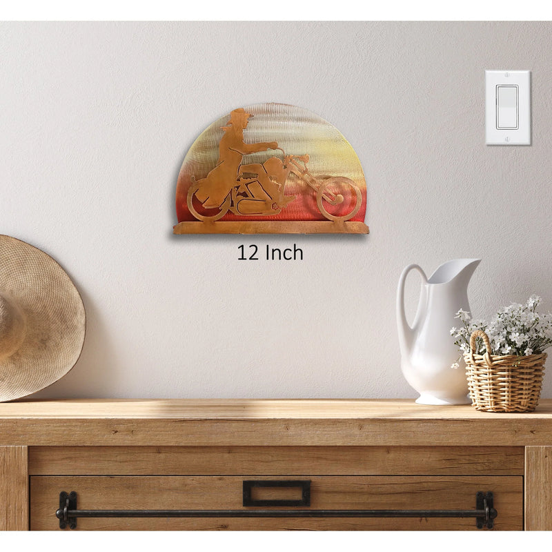 Cowboy and Cowgirl on Horseback Holding Hands Metal Wall Art
