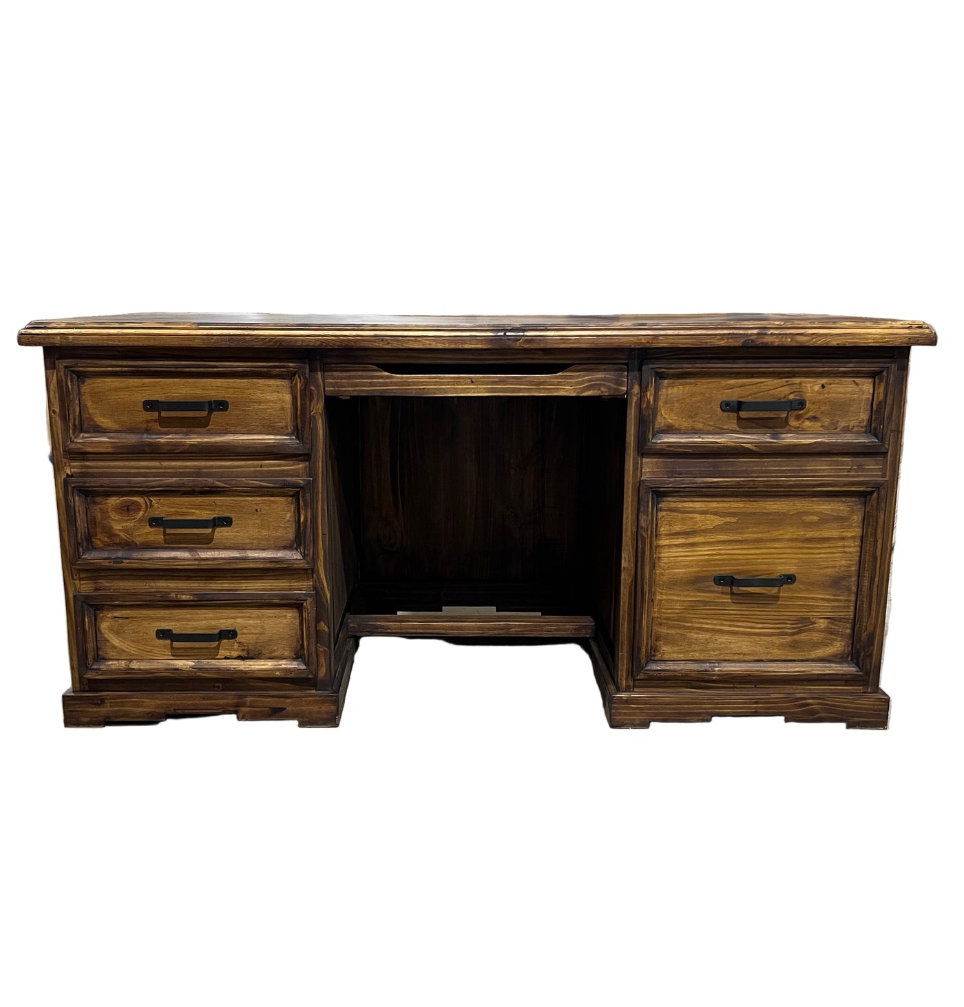 Taos Executive Western Desk with Cowhide and Carved Star in Dark Wax