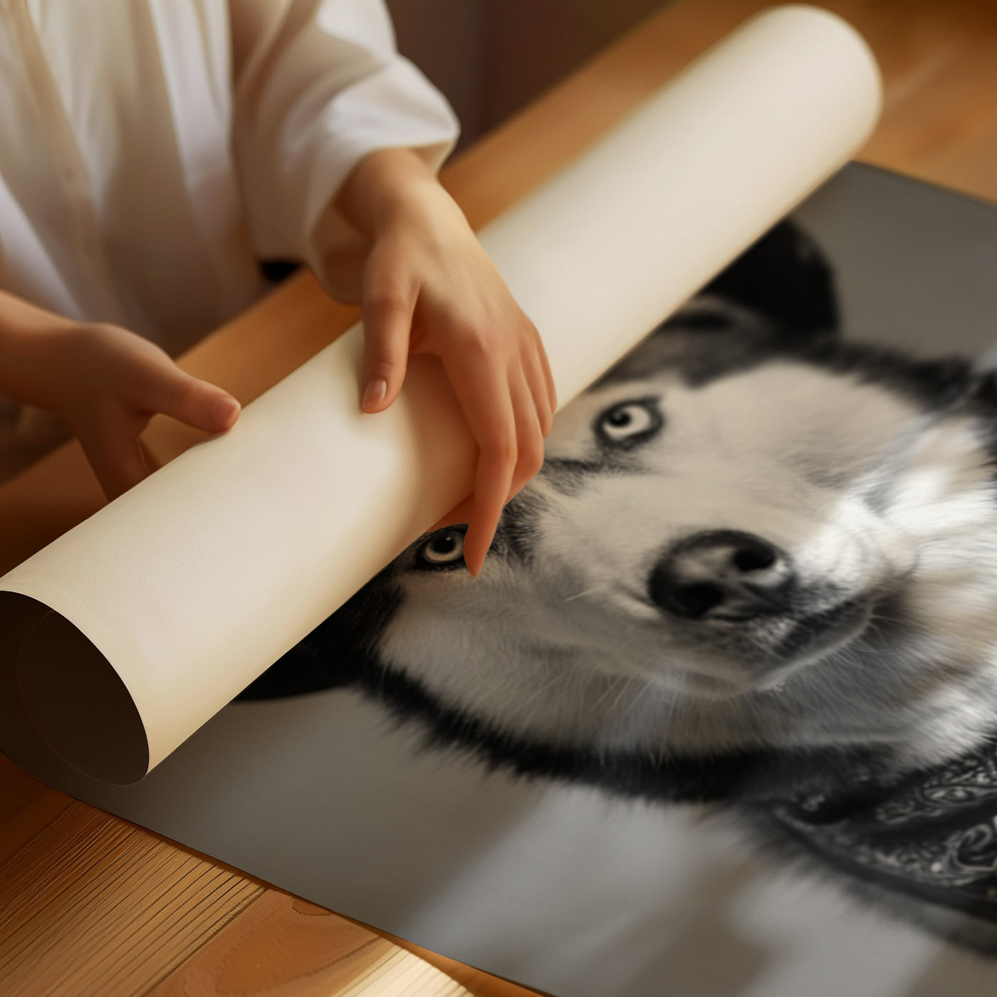 In the golden hour light, a magnificent paint horse stands sentinel in the wild grassland, embodying everything we love about these noble creatures—their quiet strength, their untamed spirit, and their profound connection to the open range. This is freedom captured in a single frame. Part of our Wild Spirits collection, this powerful black and w...