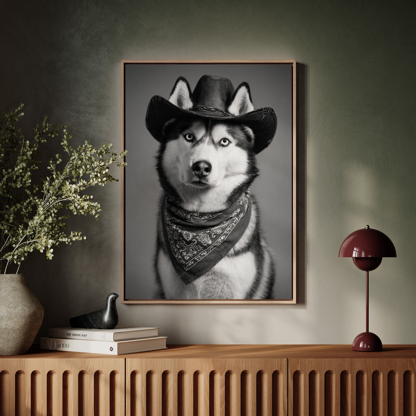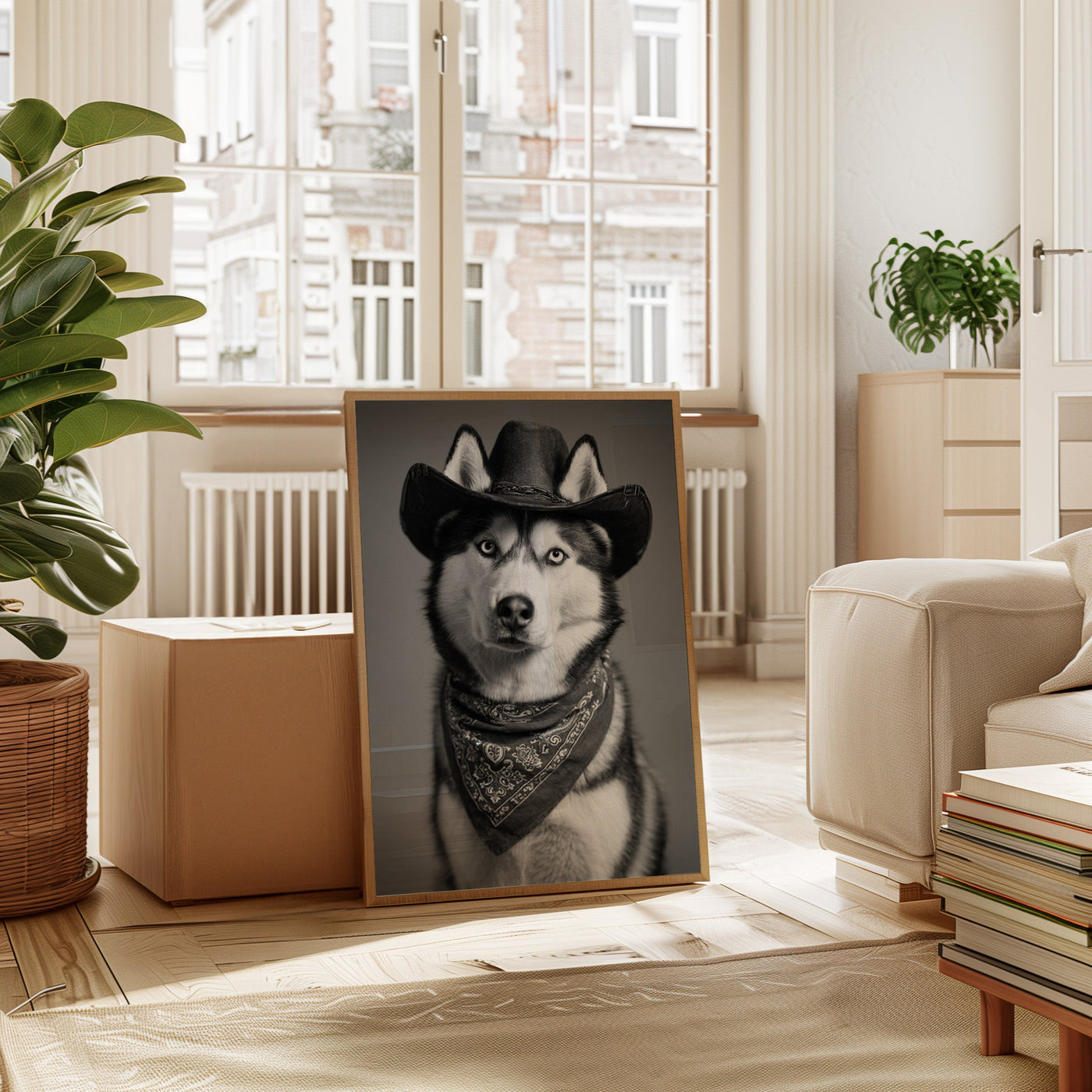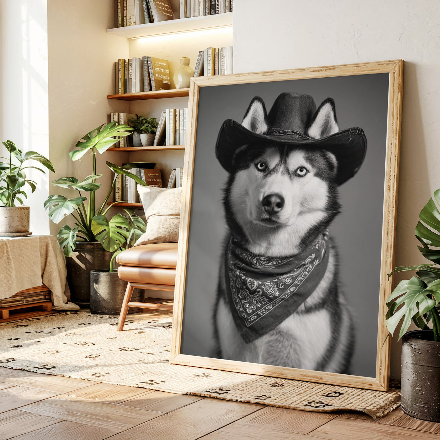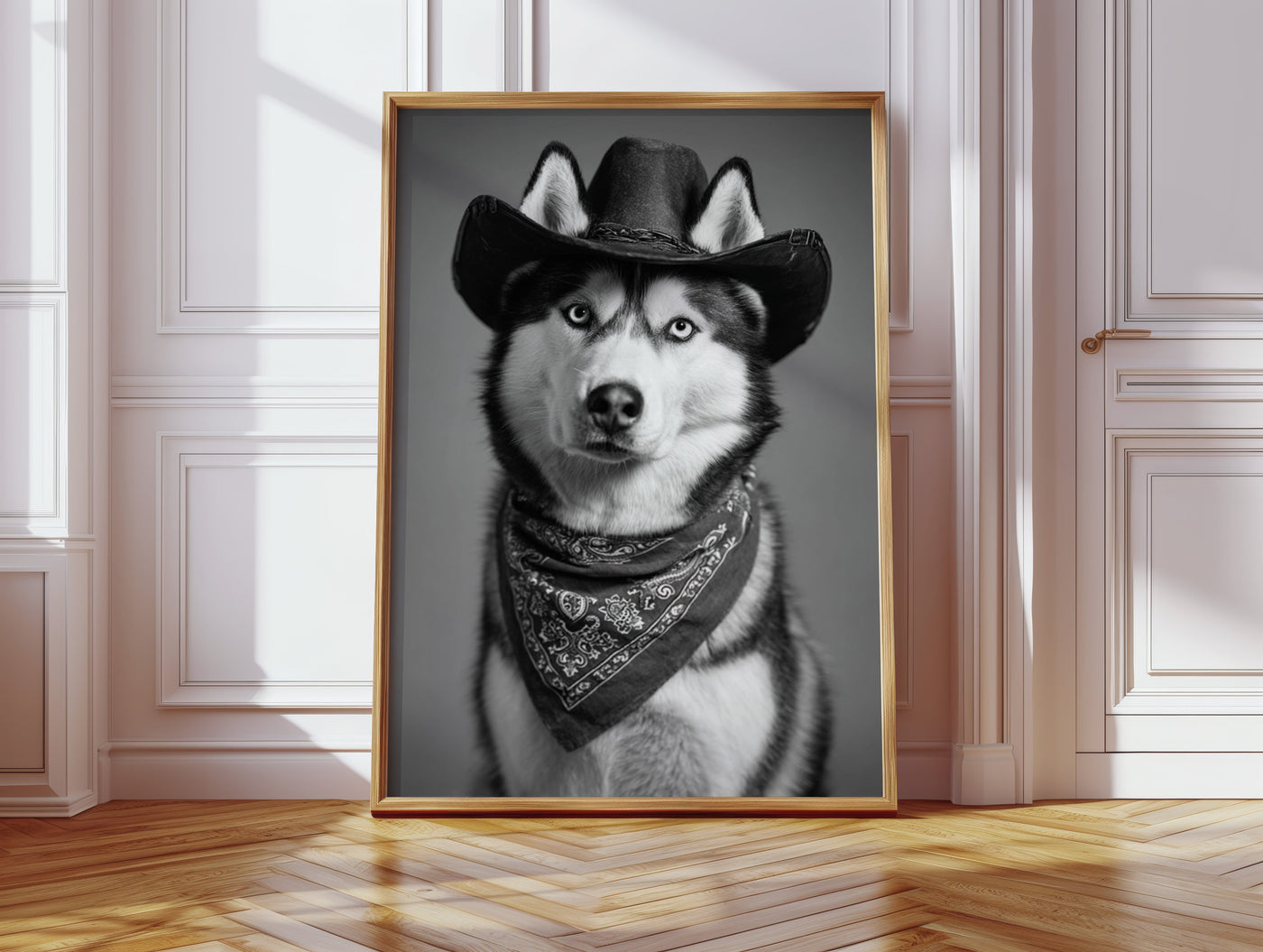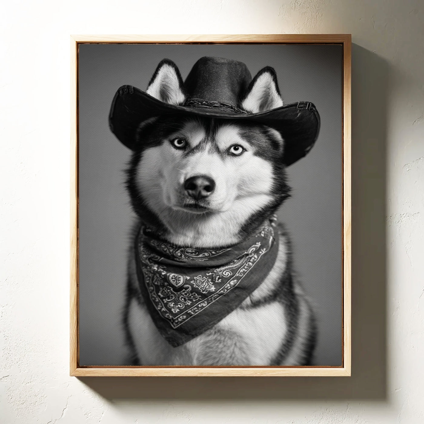All dressed up and ready to ride, this faithful companion has clearly been promoted to head of ranch security. With that perfectly positioned hat, classic bandana, and those eyes that seem to say "Where to, boss?"—he's the kind of pardner every cowpoke dreams of having by their side. Part of our Ranch Hands collection, this delightfully charming...