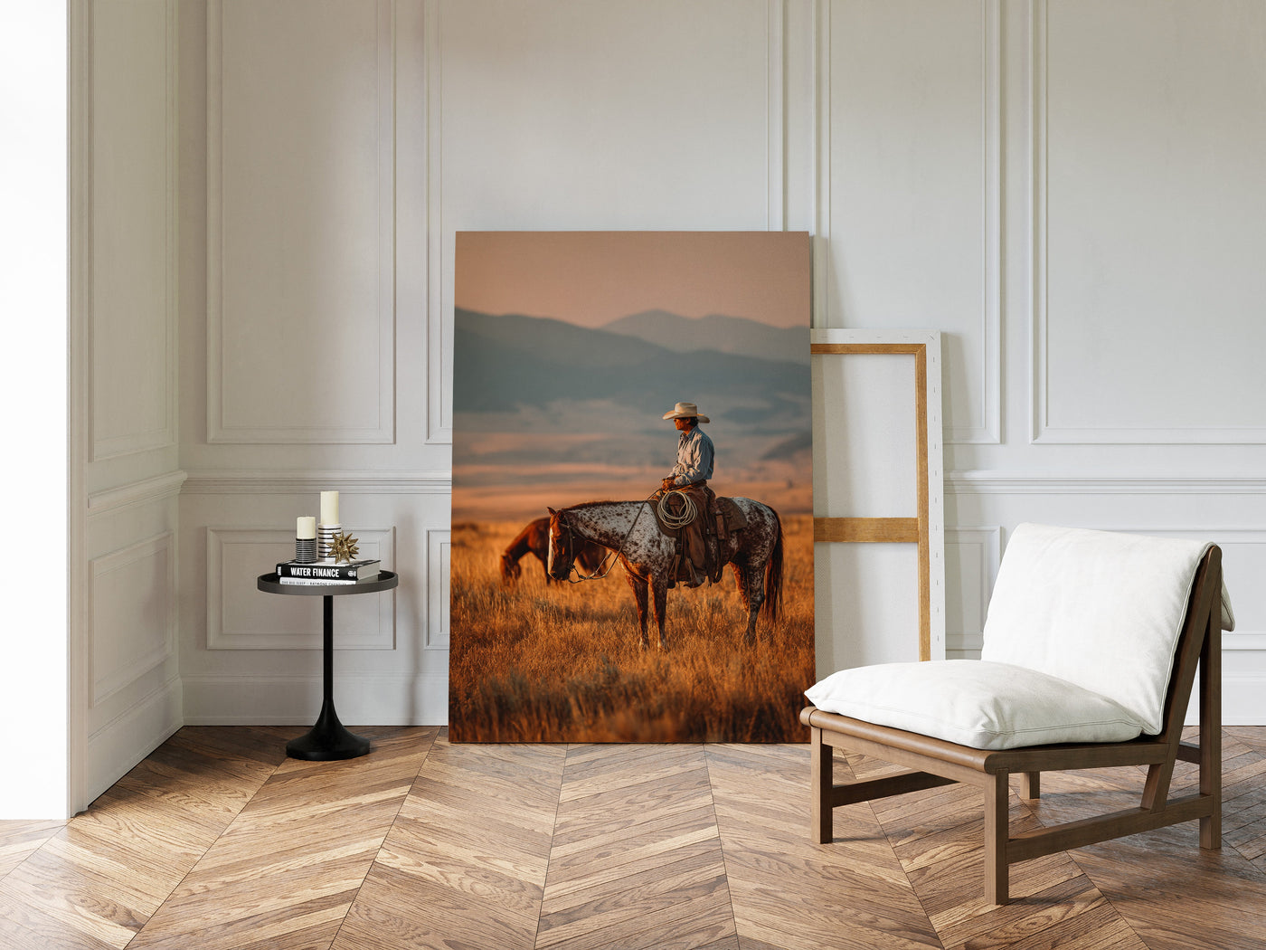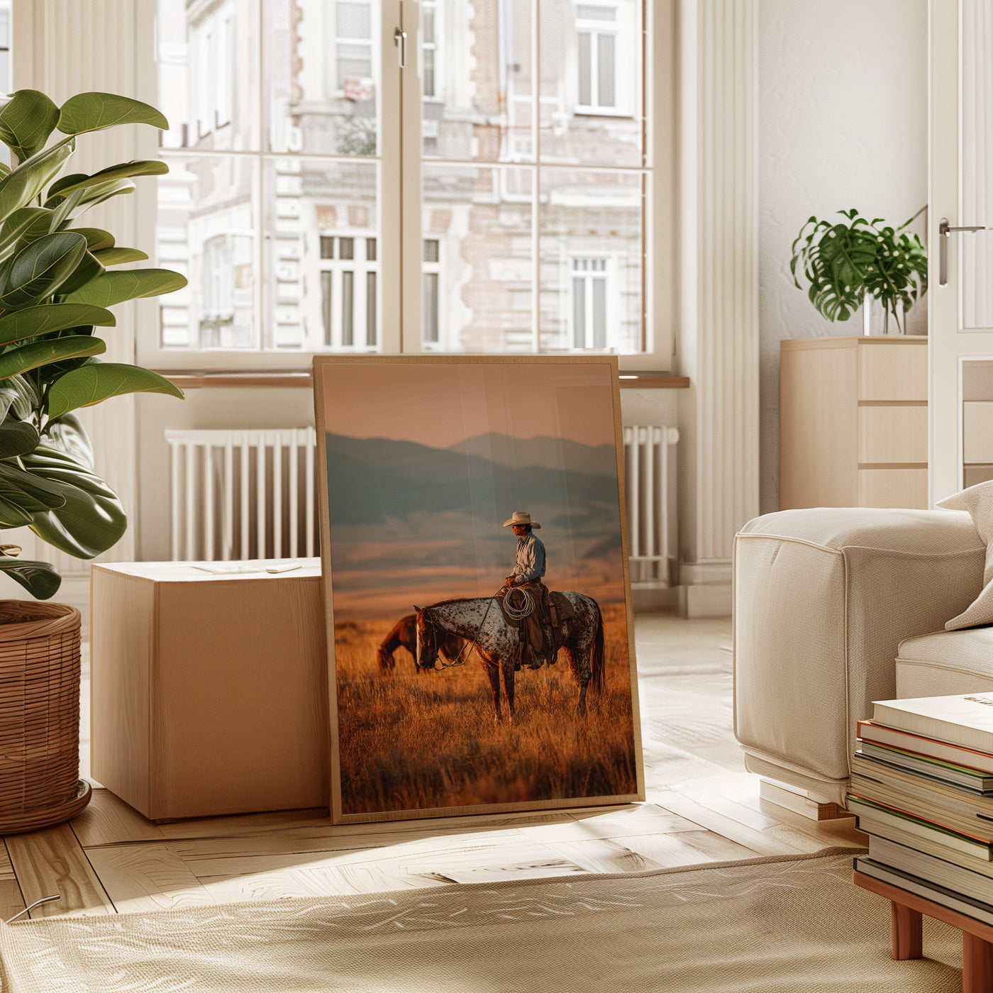 Through the swirling dust of a summer roundup, a lone rider emerges like a vision from another time. There's something almost supernatural about this moment—the way light catches the particles in the air, creating an otherworldly veil around horse and rider. Part of our Frontier Legends collection, this atmospheric photograph transforms an every...