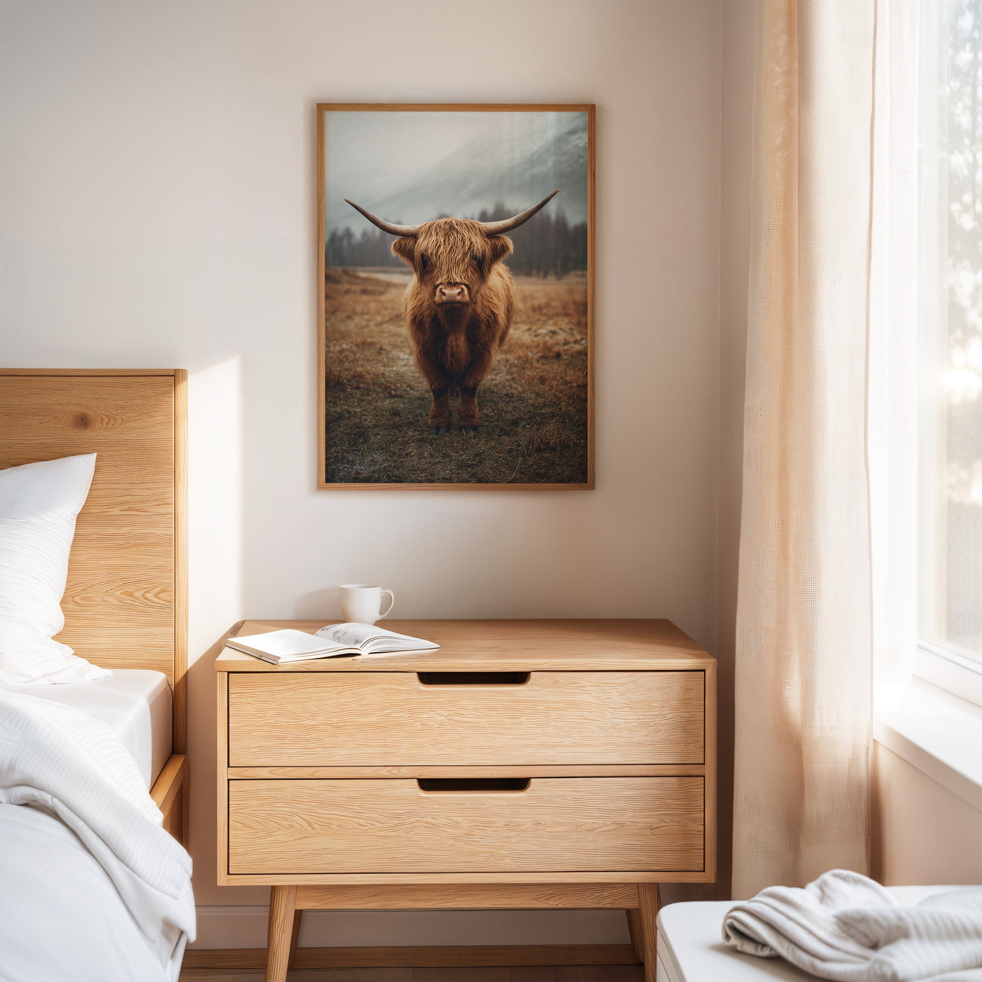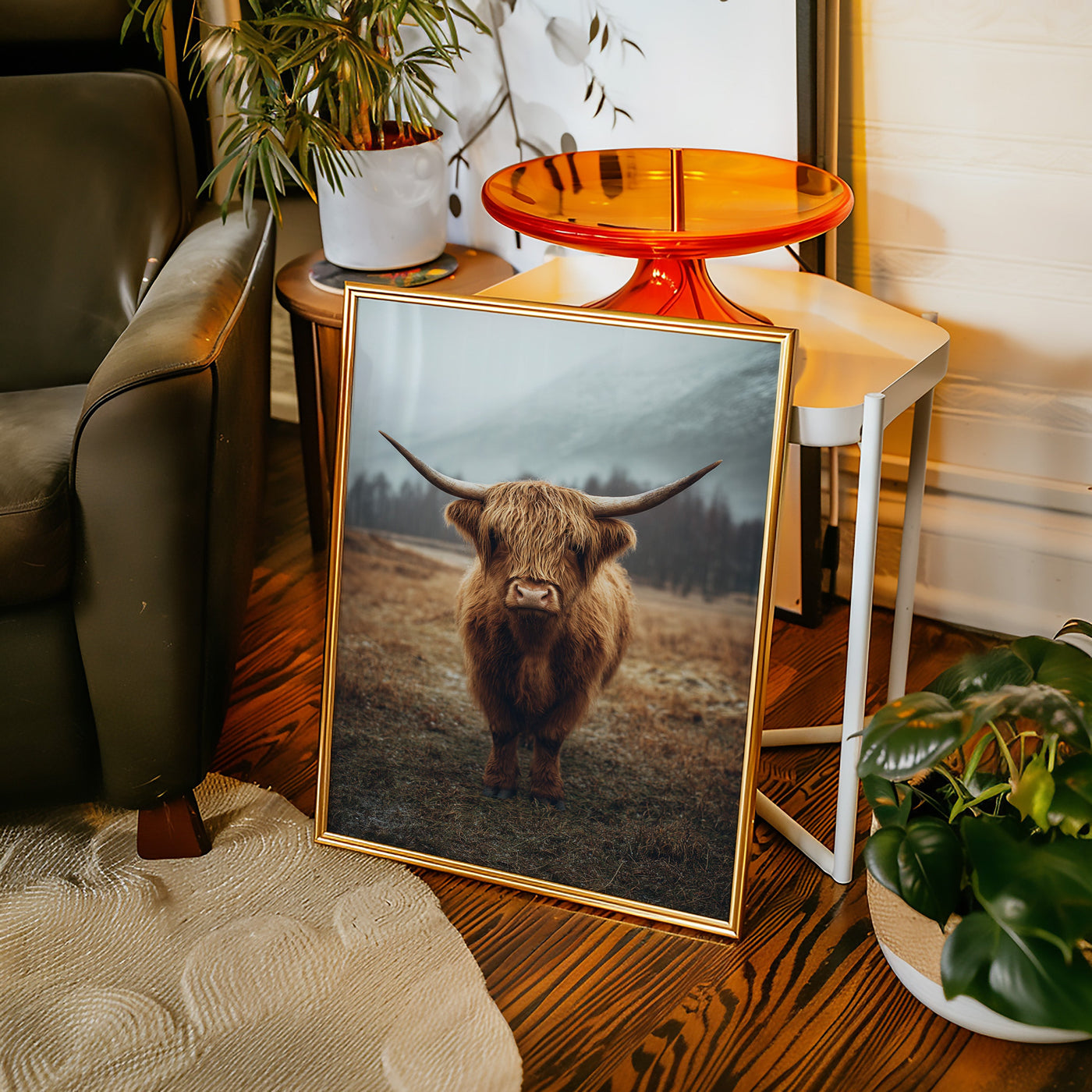 Across the vast plains where thunder once echoed in hoofbeats, this magnificent skull stands as a monument to untamed spirit. Each weathered curve tells stories of strength, endurance, and the wild heart of the American frontier. Captured in striking monochrome, this piece honors the majestic buffalo that once ruled the Great Plains. The dramati...