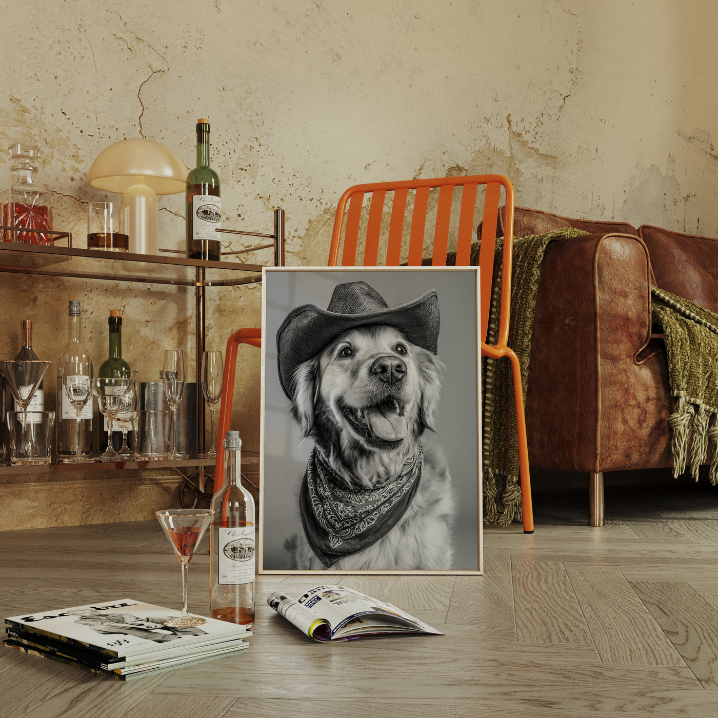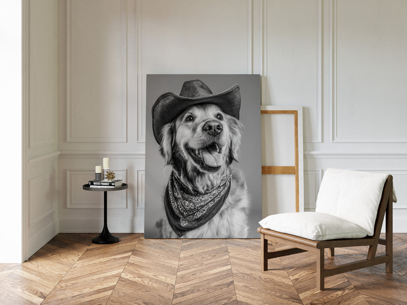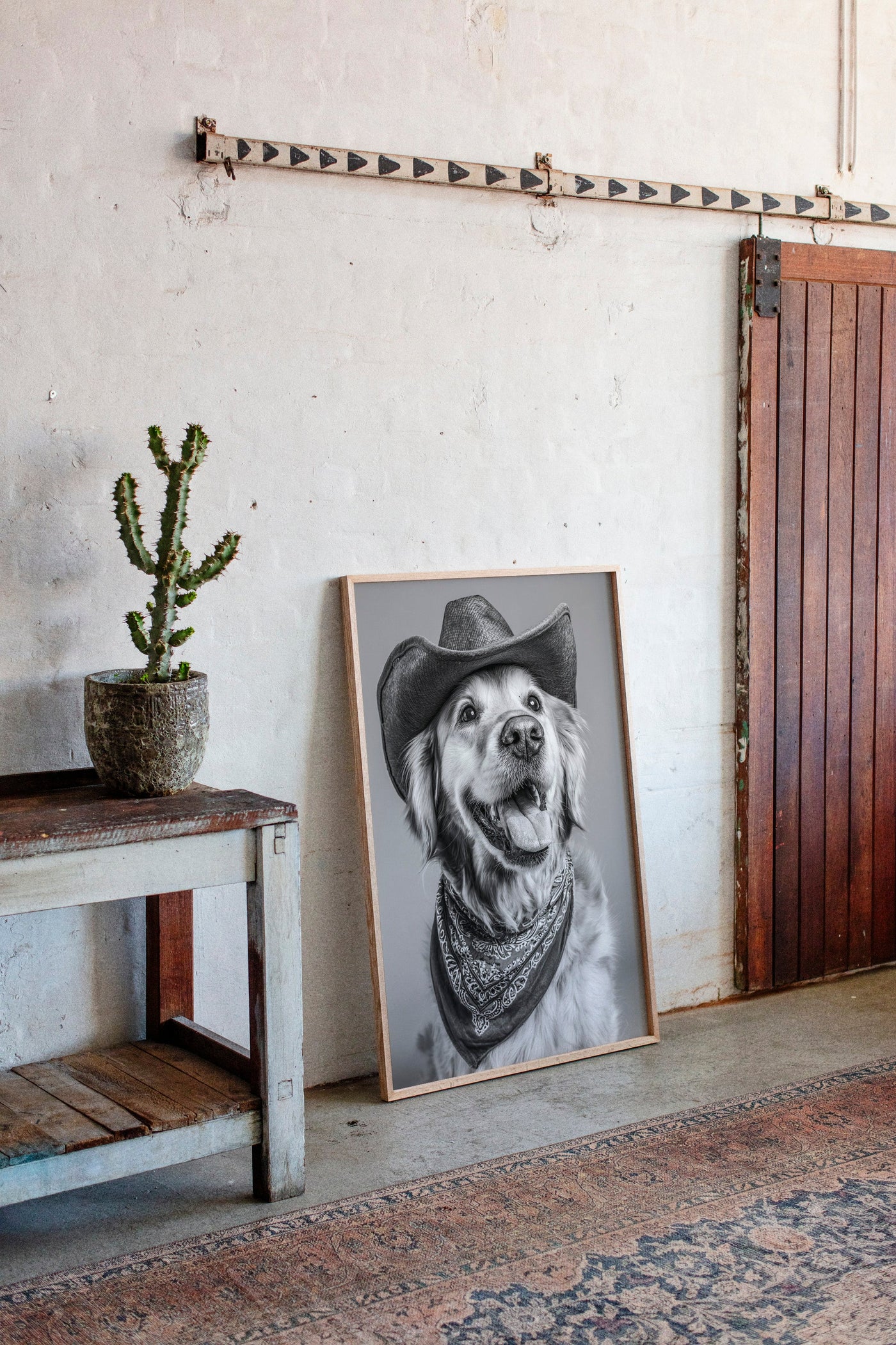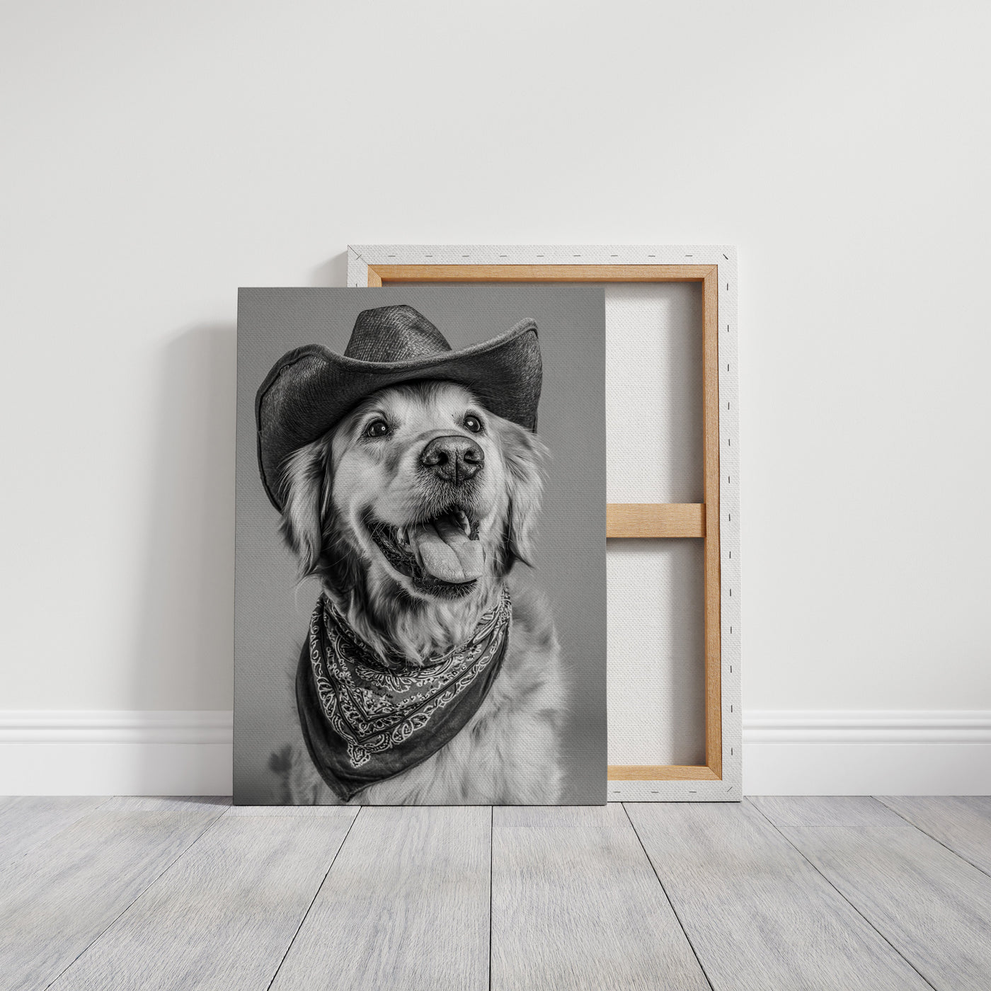 All dressed up and ready to ride, this faithful companion has clearly been promoted to head of ranch security. With that perfectly positioned hat, classic bandana, and those eyes that seem to say "Where to, boss?"—he's the kind of pardner every cowpoke dreams of having by their side. Part of our Ranch Hands collection, this delightfully charming...