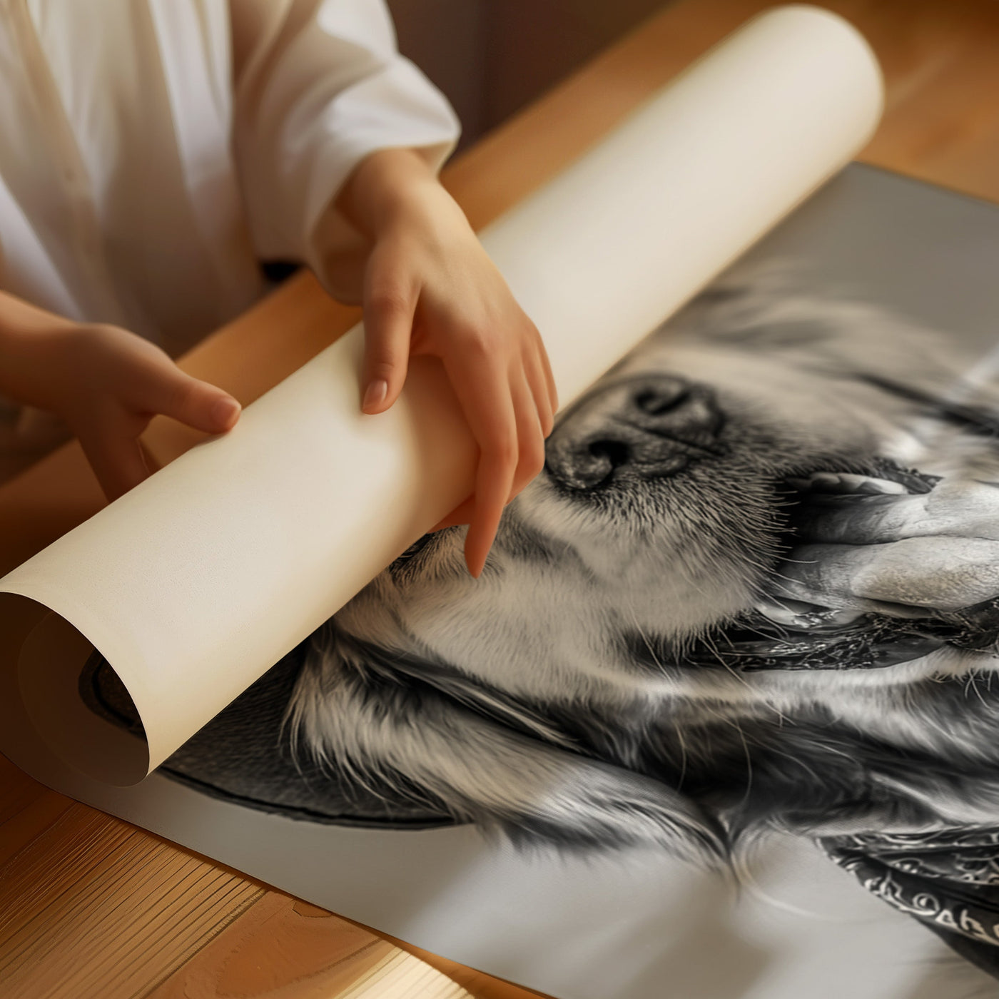 In the golden hour light, a magnificent paint horse stands sentinel in the wild grassland, embodying everything we love about these noble creatures—their quiet strength, their untamed spirit, and their profound connection to the open range. This is freedom captured in a single frame. Part of our Wild Spirits collection, this powerful black and w...