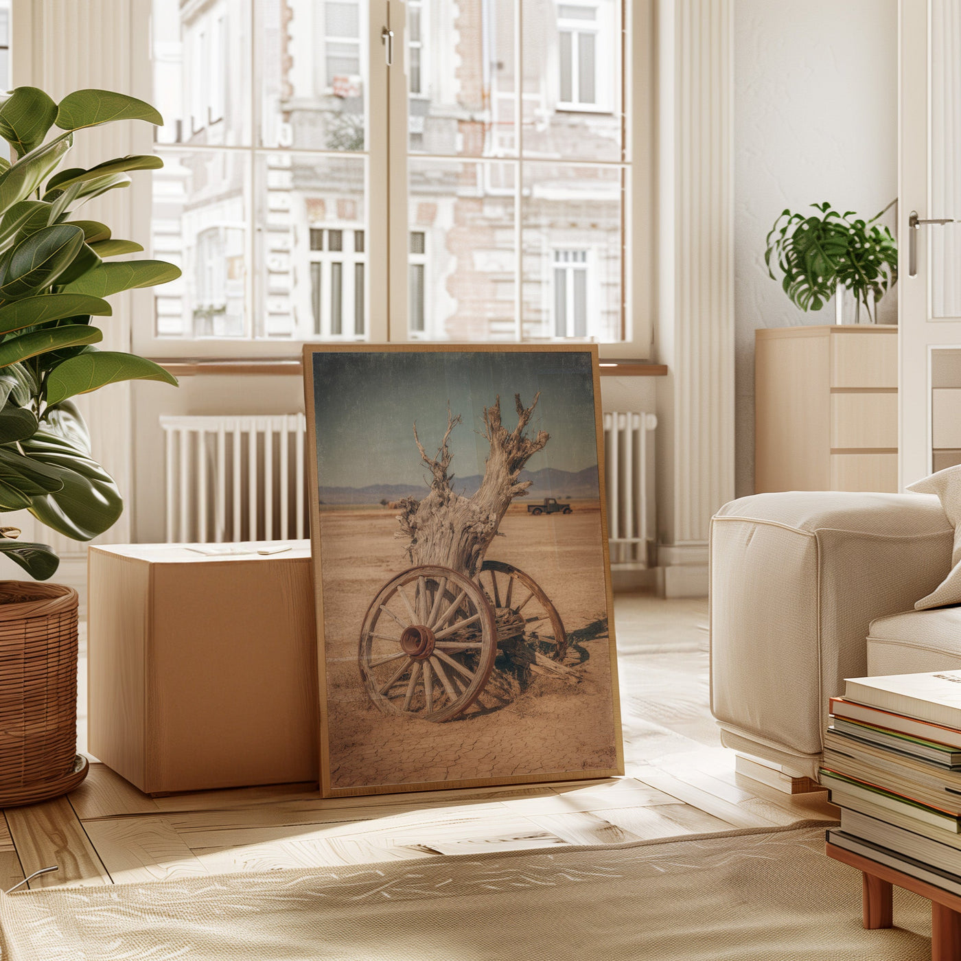Through the swirling dust of a summer roundup, a lone rider emerges like a vision from another time. There's something almost supernatural about this moment—the way light catches the particles in the air, creating an otherworldly veil around horse and rider. Part of our Frontier Legends collection, this atmospheric photograph transforms an every...