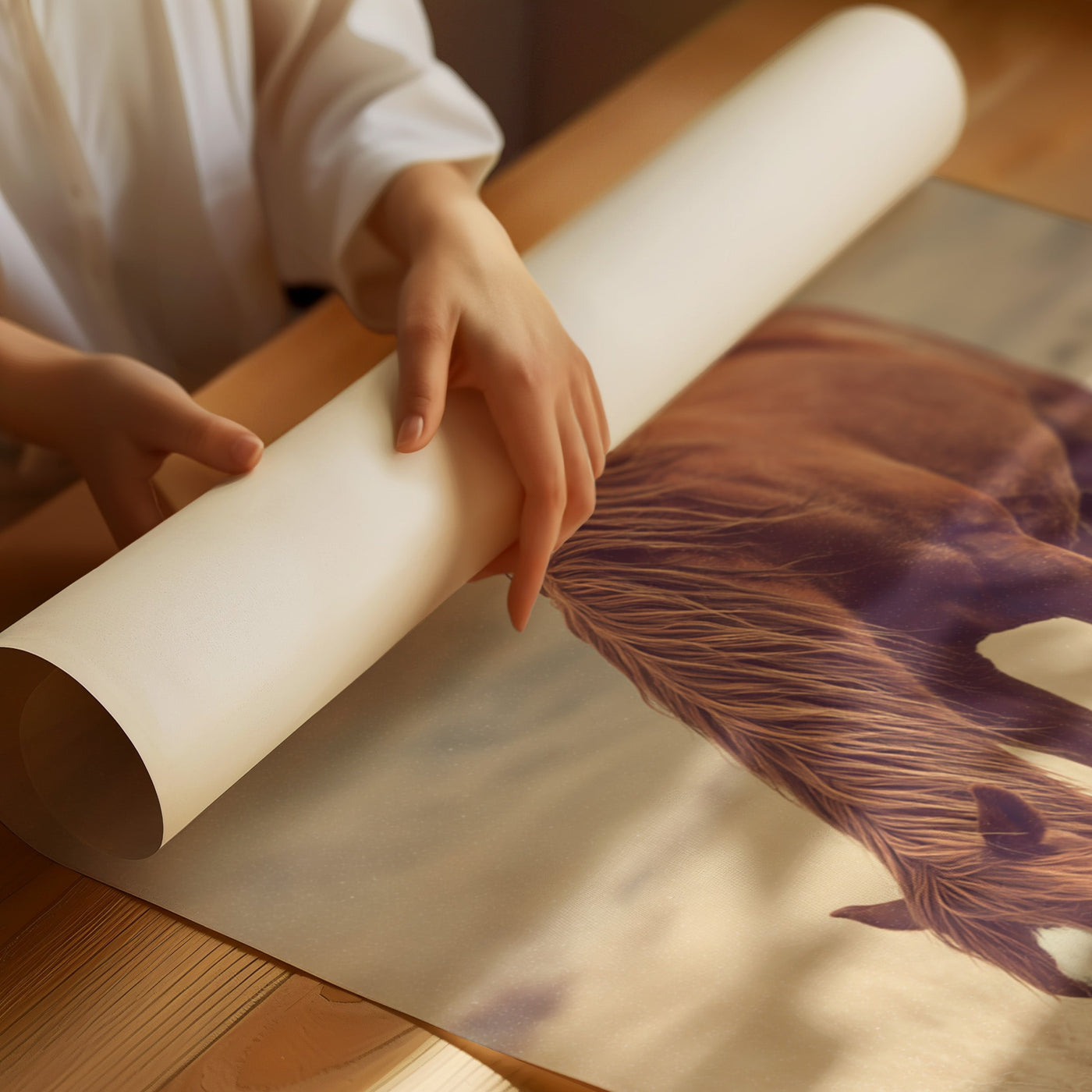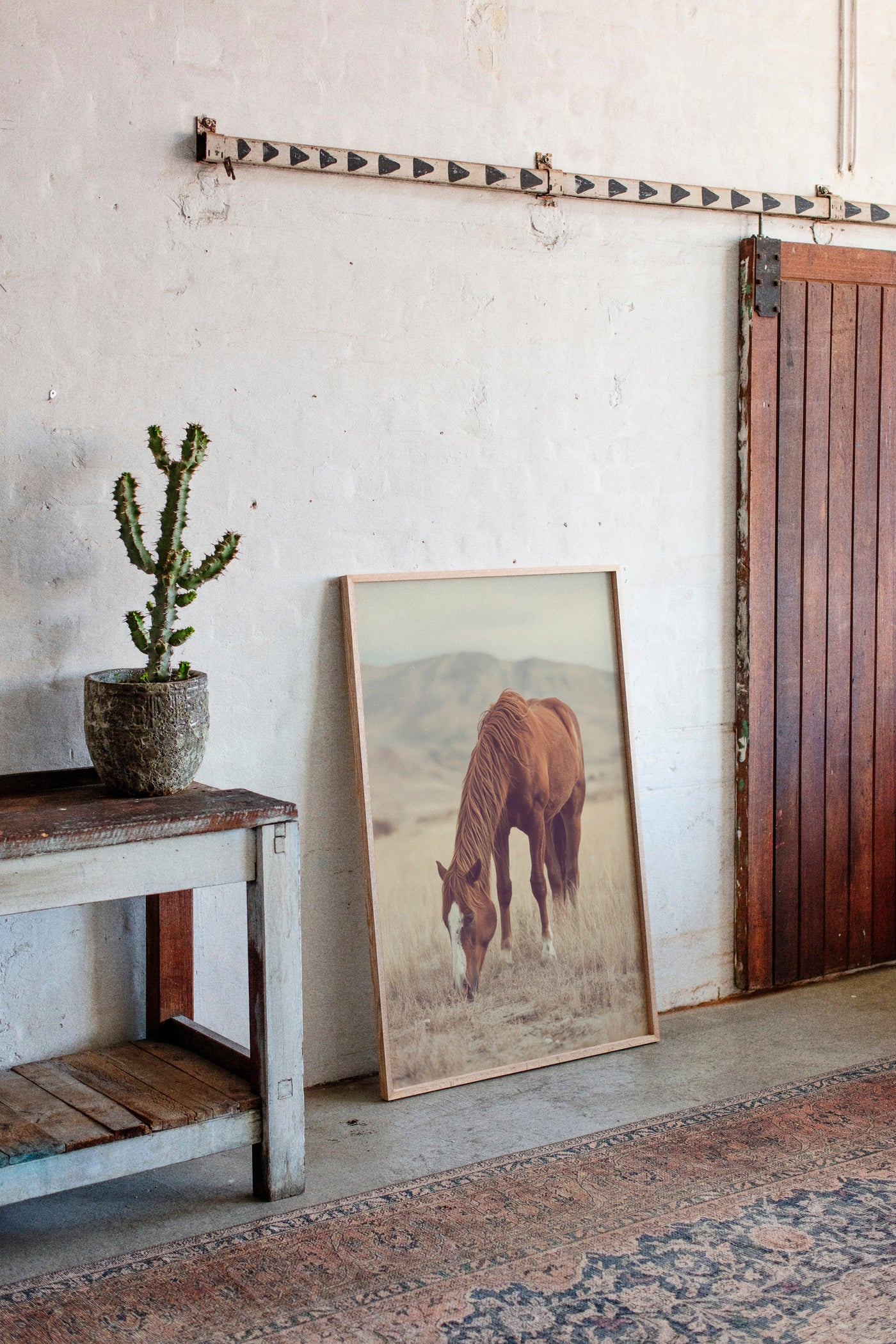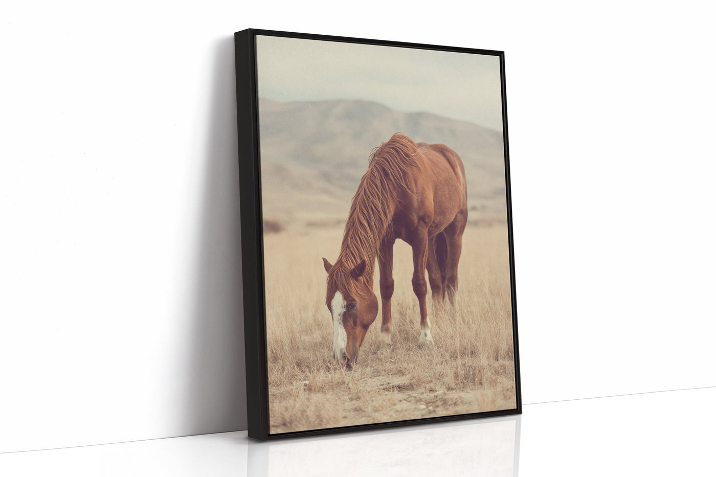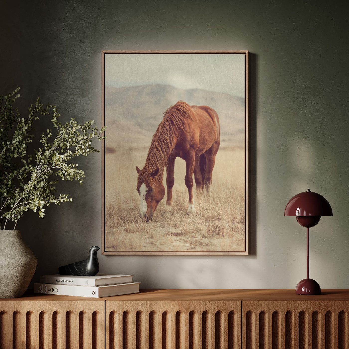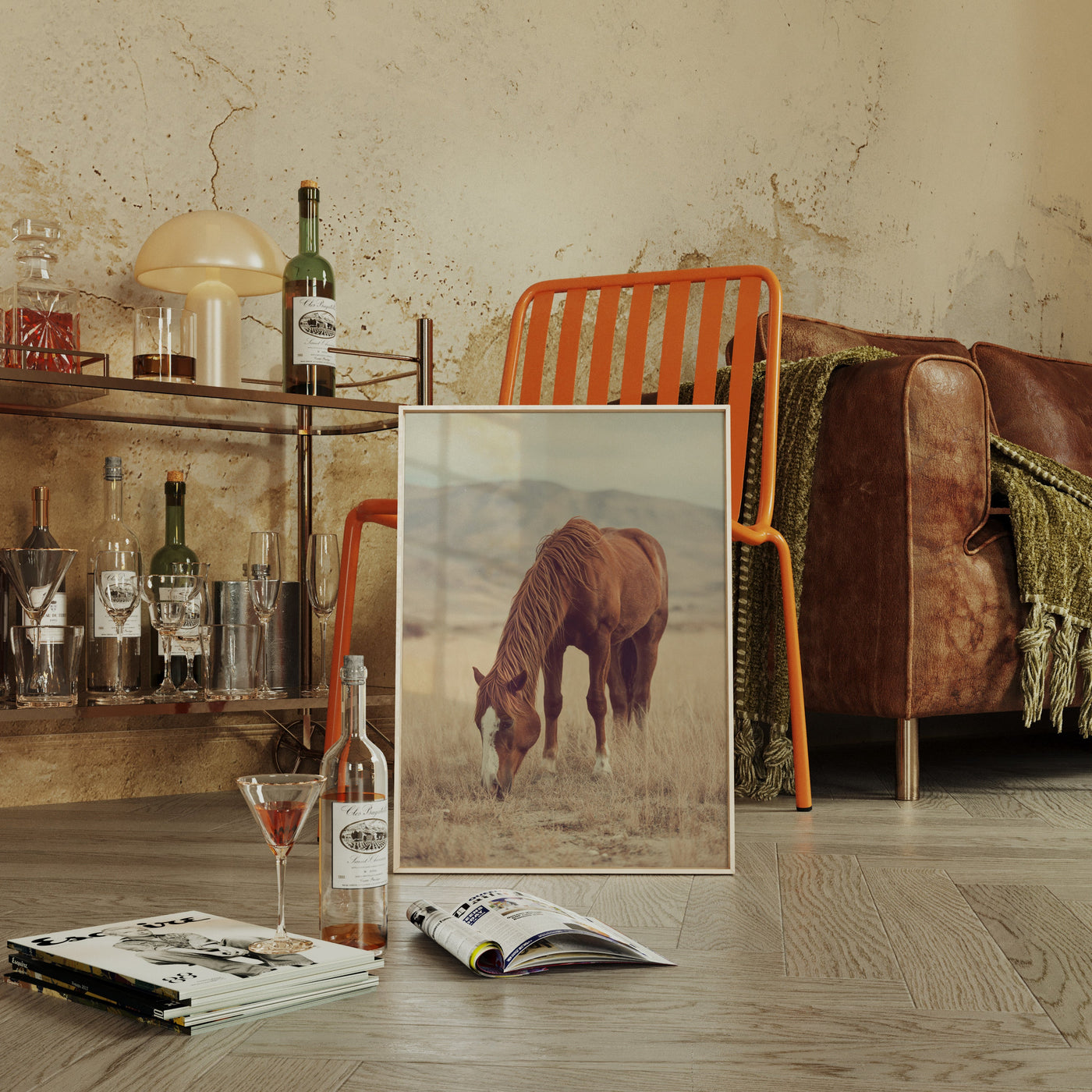 In the golden hour light, a magnificent paint horse stands sentinel in the wild grassland, embodying everything we love about these noble creatures—their quiet strength, their untamed spirit, and their profound connection to the open range. This is freedom captured in a single frame. Part of our Wild Spirits collection, this powerful black and w...