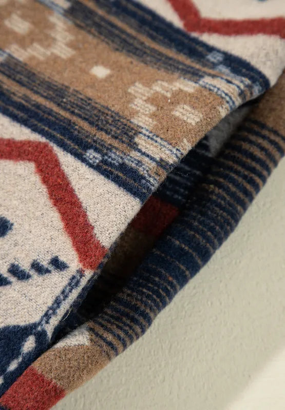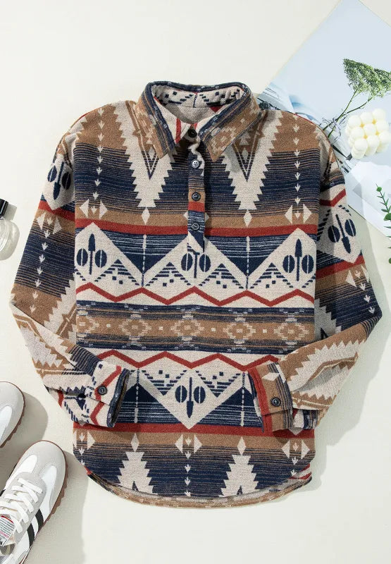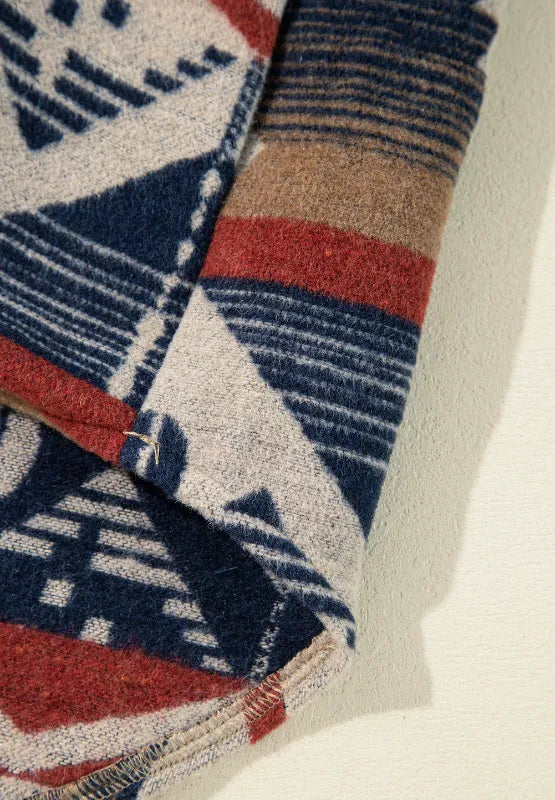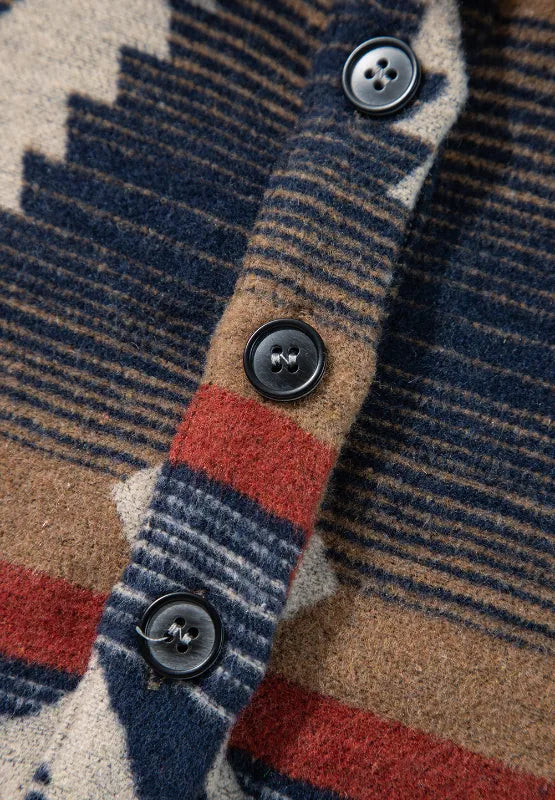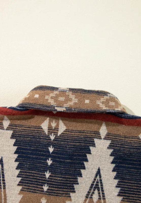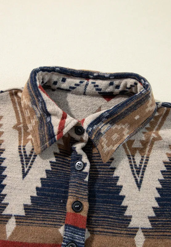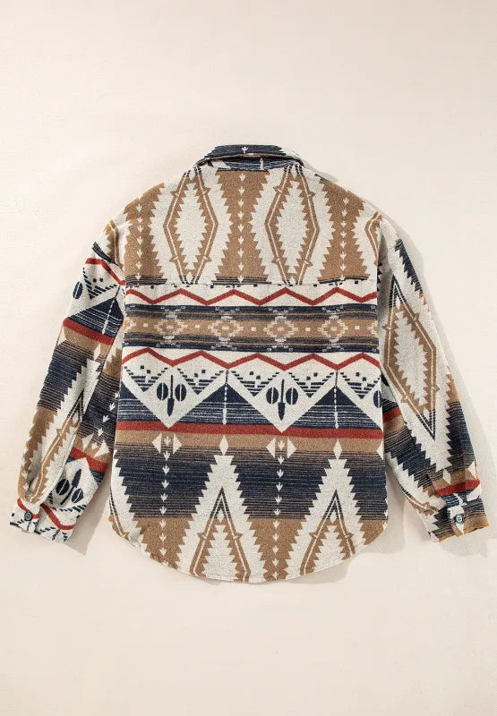 Plus Size Geometric Snap Down Long Sleeve Jacket
