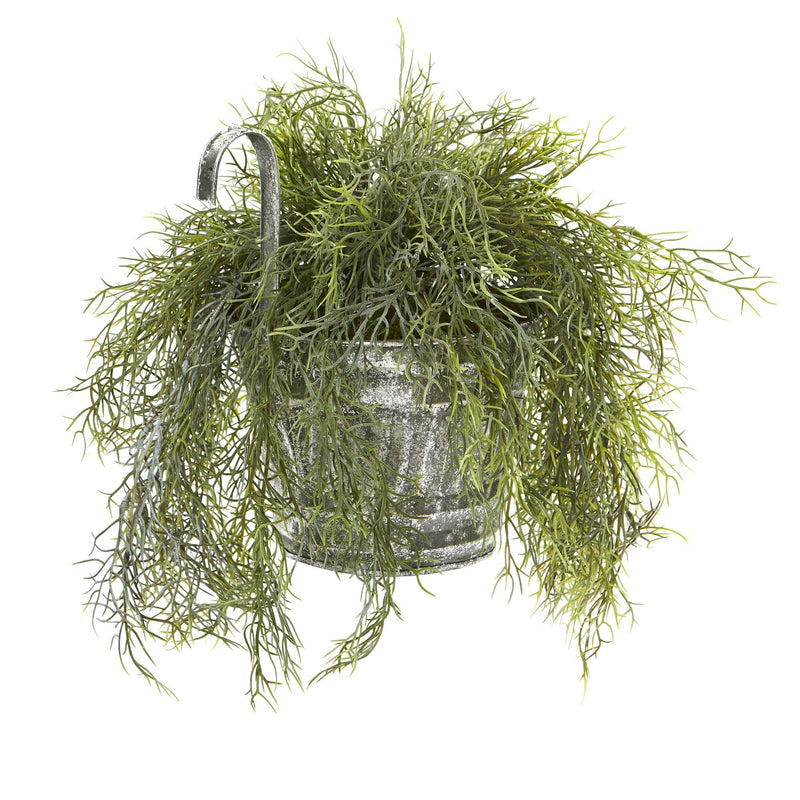 10” Tillandsia Moss Artificial Plant in Vintage Hanging Metal Pail