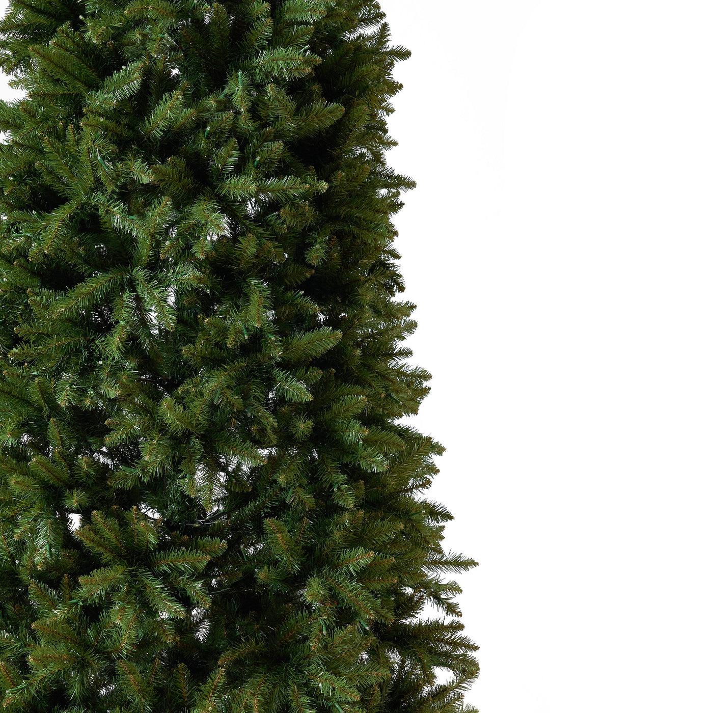 12’ Slim Green Mountain Pine Artificial Christmas Tree with 1100 Clear LED Lights and 3235 Tips