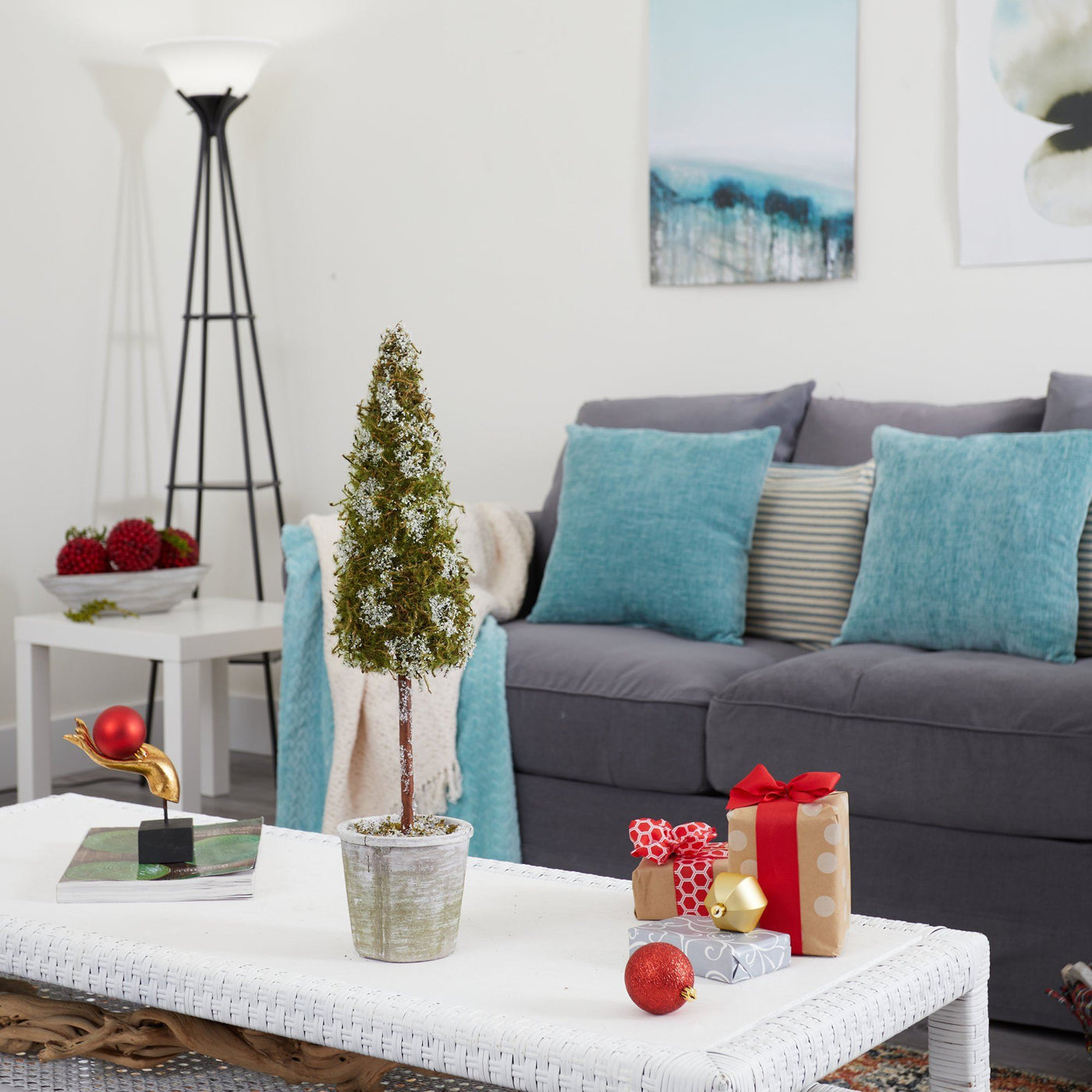 Spread Christmas cheer to your tabletops with this desktop artificial Christmas tree. Recreate a snowy winter wonderland with the snow dusting on the thick branches. Hang all your favorite Christmas ornaments quickly and effortlessly, and you can even illuminate with your favorite lights. Standing 33” from a decorative planter, add to any deskto...