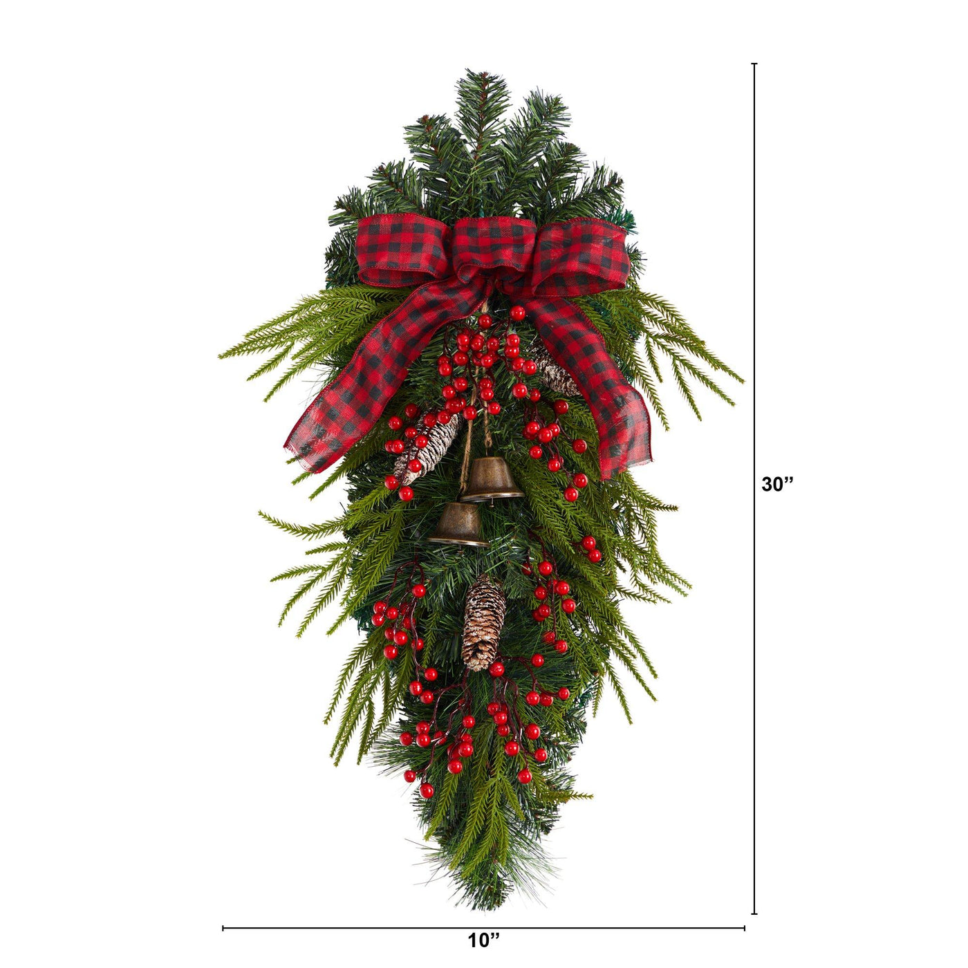 24” Holiday Christmas Pine Cones, Berry and Bells Wreath