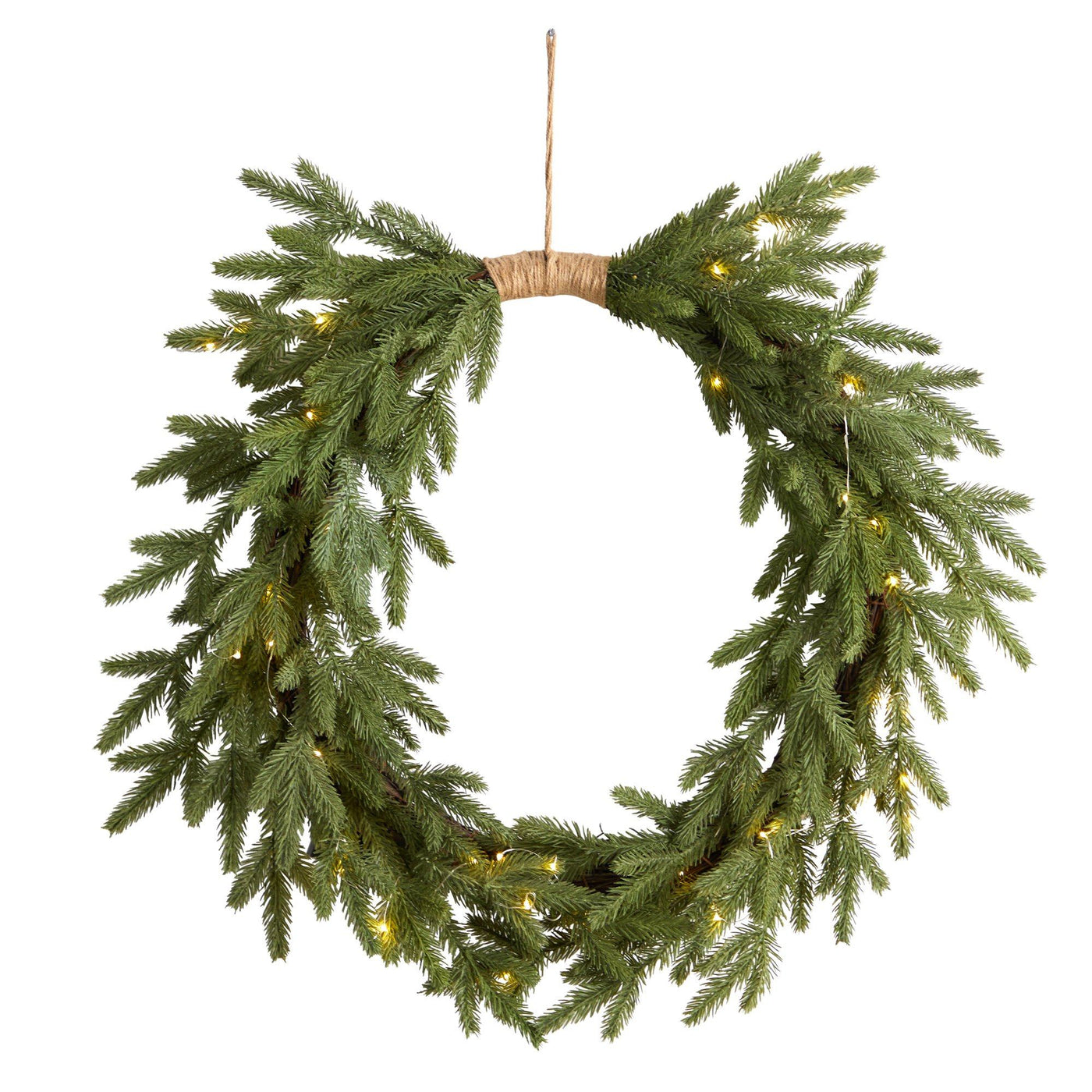 24" Holiday Christmas Pre-Lit Cascading Pine Wreath