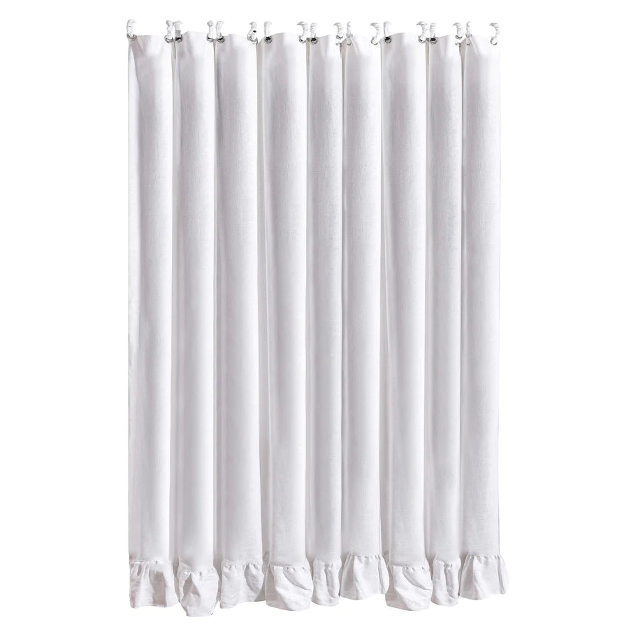 WASHED LINEN RUFFLED SHOWER CURTAIN, WHITE