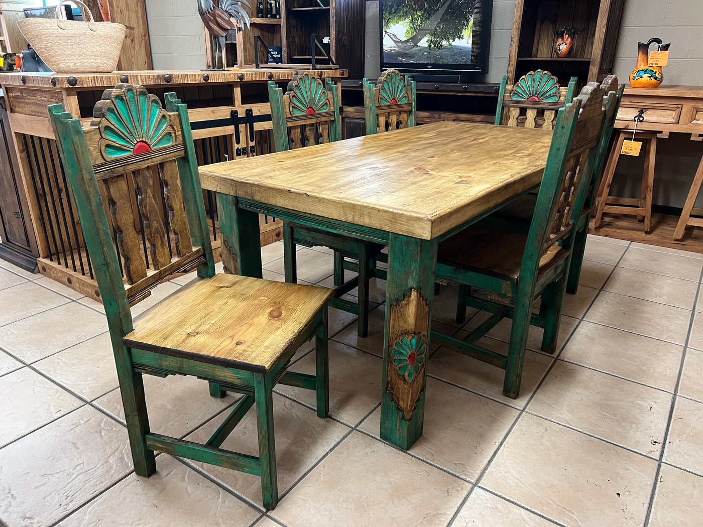 Rosetta 6' Dining Table and 6 Rosetta Chairs in Green