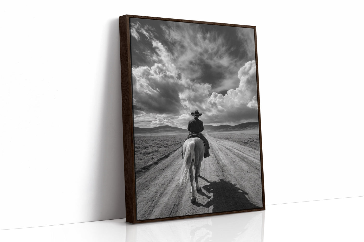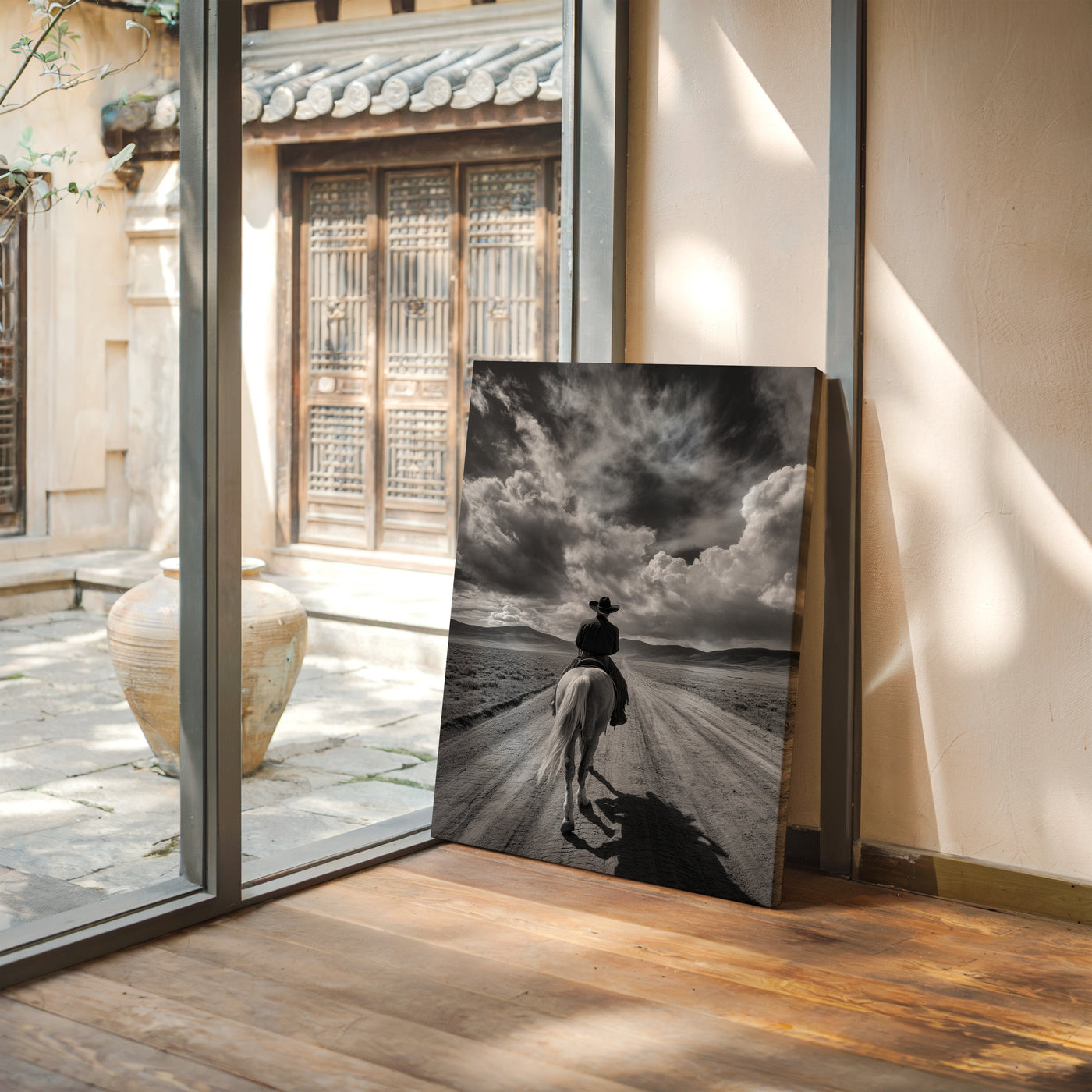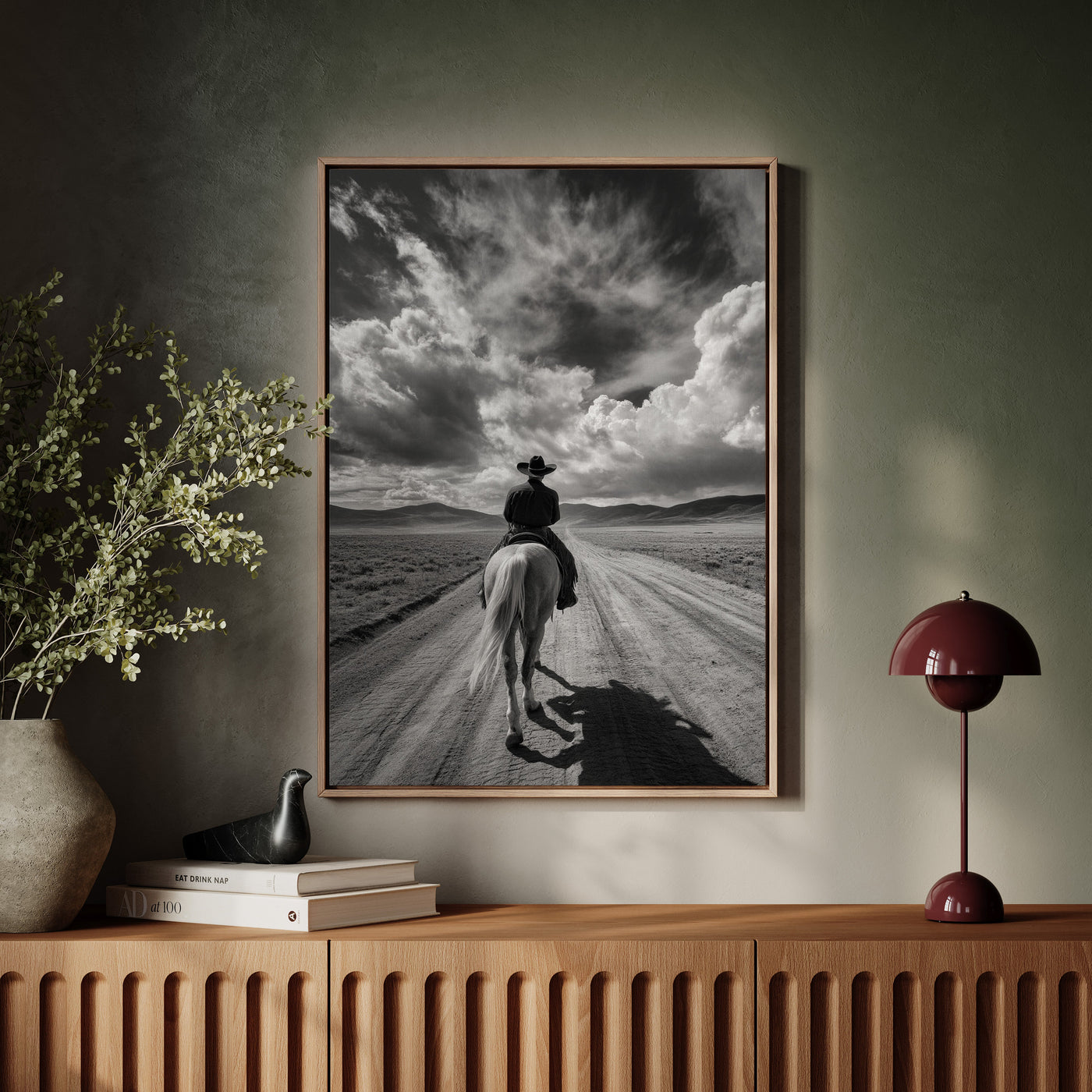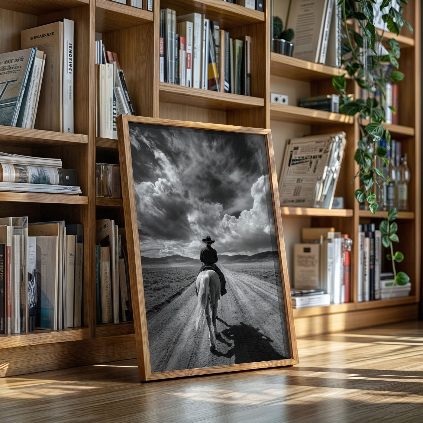 Part of our Against All Odds collection, this stirring photograph captures the essence of determination in its purest form. The lone rider facing the dramatic storm clouds creates a powerful metaphor for life's challenges, while the endless dirt road represents the journey we all must take through uncertain times. The cinematic composition transforms a moment into a timeless story about courage, resilience, and the quiet heroism found in simply moving forward when everything tells you to stop.