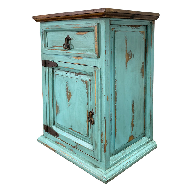 Traditional Small Rustic Nightstand Oldie Turquoise